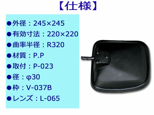 大東プレス トラック サイドアンダーミラー DA-225 【適用車種】 メーカー 三菱 車種 ファイター 型式 FK / FL 系等 純正品番 MC922840 ※※ご注文前に、お客様ご自身による純正品番のご確認をお願いいたします。 ■商品詳細 メーカー 大東プレス工業株式会社 外径 245×245 有効寸法 220×220 曲率半径 R320 材質 P.P (ポリプロピレン) 取付 P-023 径 30mm 枠 V-037B レンズ L-065 【ご 注 意】 ※納品後の交換は、ご注文品番以外のものが届いた場合を除き、交換・返品などはお受けいたしかねます。 ※メーカー在庫の為お急ぎの場合は、納期の確認をお願い致します。 ※通常1〜2日(土・日・祝日を除く)で発送となります。 ◆当社指定運送会社 送料無料にて発送いたします。◆商品代引きご希望の場合、代引き手数料が別途必要となります。