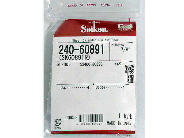 Seiken セイケン カップキット ホイールシリンダーのオーバーホールキットです。●ゴムカップは摺動によって消耗劣化したり、スラッジによって傷みます。 ●摩耗すると十分に液圧が保持できず、ノーブレーキになる恐れが あります。定期交換をお勧めします。 ■メーカー:制研化学工業株式会社 (Seiken) ■生産国:日本製 (made in japan)■参考車種メーカースズキ車種ジムニー型式JA11V年式H02.02〜H07.10純正品番52400-80820エンジン型式F6A備考使用箇所:リア保証は通常、初期不良のみの対応となります。本製品により生じた工賃・修理保証などの責任は負いかねますので予めご了承下さい。 【ご注文前にご確認ください】 上記年式内でもグレード・エンジン型式等により 適合しないお車がございます。 ご注文前に適合についてお問い合わせください。 適合品が変更になると価格が変わる場合がございます。 予めご了承ください。 発送の前に必ず適合の確認を行っております。 ※車検証に記載が御座います、 ・初年度登録年月 ・車台番号 ・型式指定番号(数字5ケタのみ)・類別区分番号(数字4ケタのみ) をお知らせ下さい。 ※純正品番などで適合確認がお済みの場合は、ご要望欄に 「適合確認済み」とご入力下さい。 【ご 注 意】 ※納品後の交換は、ご注文品番以外のものが届いた場合を除き、交換・返品などはお受けいたしかねます。 ※メーカー在庫の為お急ぎの場合は、納期の確認をお願い致します。通常1〜2日(土・日・祝日を除く)で発送となります。 ◆メール便(日時・時間指定不可)送料無料にて対応をさせて頂きます。