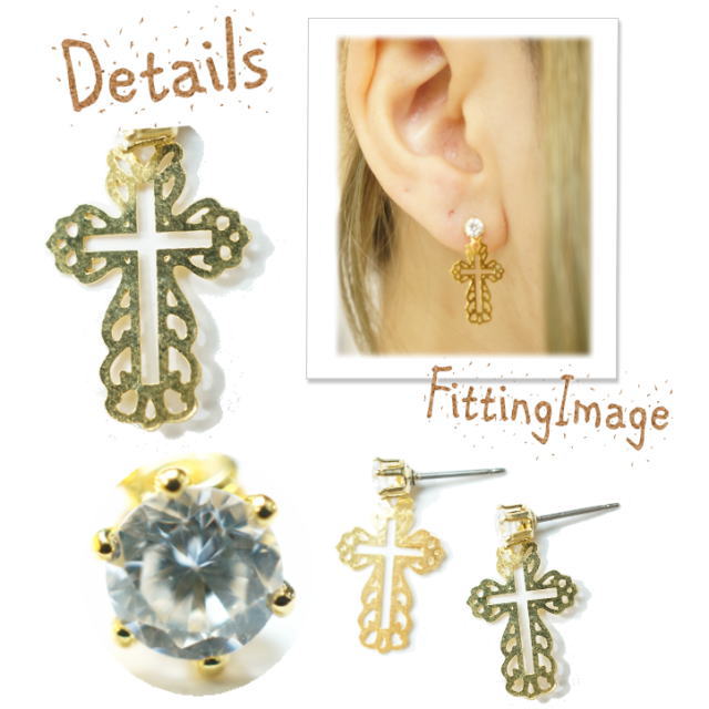他のキュービックジルコニアアクセもチェック! ギフト対応を承ります。 ※袋やリボン、ご予算などで、お好みに合わせてチョイスすることができます。詳しくはギフト対応についてのページをご参照下さい。■ギフトラッピング参考例■ ※コンビニ決済を選択された場合 後程お支払番号を明記したメールが送信されます。 ドメイン設定されている方は、メールが届かない場合がございます。 その際は、お手数ですが当店までご連絡ください。 TEL:03-3413-9455 ●これって安心?アレルギーフリーピアス 【サージカルステンレス製ピアスフック・ポスト】 サージカルステンレスは金属アレルギーになりにくい金属といわれています。 当店のサージカルステンレスフックはアメリカ製で安心して身に着けることができます。 【チタン製ピアスフック・ポスト】 チタンもアレルギーになりにくい金属といわれています。 当店のチタンフックもアメリカ製です。 安心して身に着けることができます。 【樹脂製ピアスフック・ポスト】 樹脂ピアスはプラスチック製のため、金属アレルギーを起こさず、かゆくなりにくい素材とされています。 そのため安心して身に着けることができそうです。 柔らかい素材のため、ポストが太めです。 ●注意点! アレルギーを引き起こす金属や素材には個人差がございます。 メッキ加工がされている商品の場合、お肌に触れますとアレルギー反応が出る場合もございます。 プレゼントしています! Item Spec 素材 キュービックジルコニア、合金(金メッキ)、チタンポスト サイズ ◆クロスプレートのサイズ:約(縦)18.5mm×(横)12.5mm◆キュービックジルコニアのサイズ:直径4.3mm◆ポストの長さ:約9.2mm◆ポストの厚み:約0.7mm 個数 ペアー売り(1組2個セット)耳に優しいシリコンゴムキャッチ付き メール便 メール便梱包の詳細は⇒コチラ 特徴 透かし模様の入ったクロスプレートとキュービックジルコニアが可愛いスタッドピアスです。メール便OK♪ 注意 ※画面上と実物では多少色具合が異なって見える場合もございます。※チタンやサージカルステンレスは比較的金属アレルギーを起こしにくい素材とされていますが、すべての方にアレルギー反応がでない事(アレルギーフリー)を保証するものではございません。また、メッキ加工がされている商品の場合、お肌に触れますとアレルギー反応が出る場合もございます。 ⇒●シリコン製スタッドピアスカバーはこちらから
