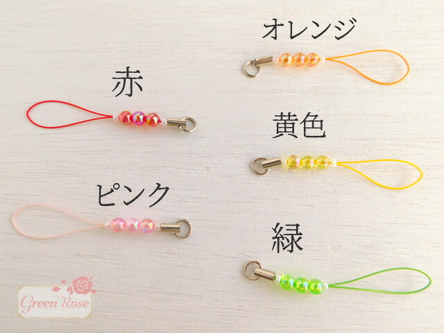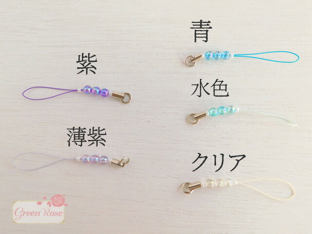 ストラップ オーロラビーズ付き 10本 キーホルダー ビーズ YM7-91 GreenRoseYumi