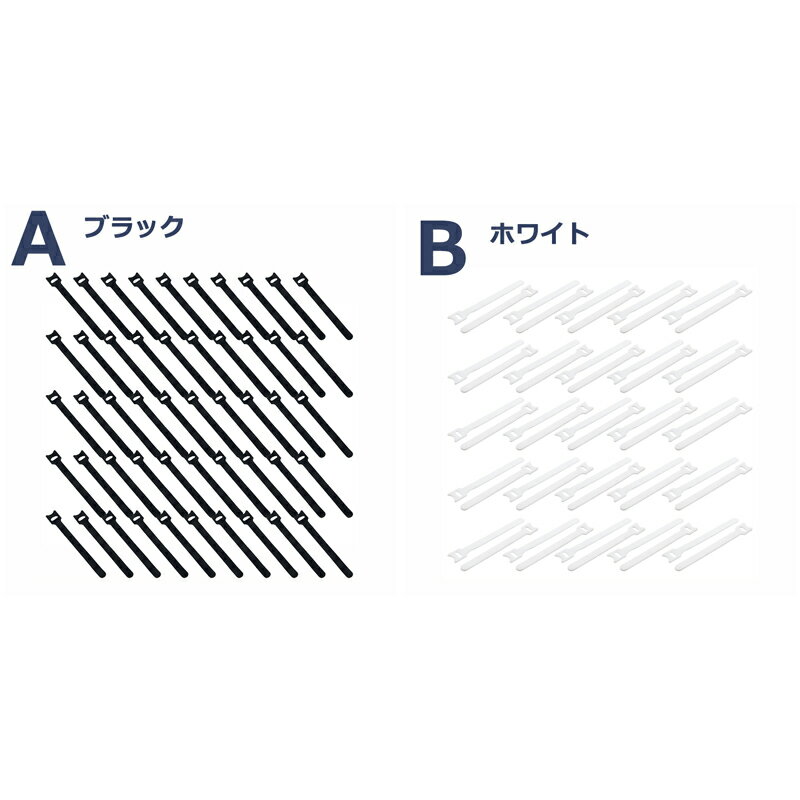 製品内容ケーブルバンド×50本【A】ブラック【B】ホワイト サイズ(約)12mm×15cm 保証期間お届け日より1ヶ月【配線をキレイにまとめる】家や会社や日常生活色々な場所で使用しているのケーブル結束バンドです。電線コード、ケーブル、USBケーブルの整理に大活躍です。【高品質】プレミアムナイロン素材を採用し、繊維質で柔軟性に優れているので、使っていて脆さが感じなくて長期間断裂を心配することなく使用、されます。柔らかい毛羽ループ面は、束ねられた物の表面を傷つけません。【使いやすいです】フックとループの設計で、取り付けも取り外しもとっても簡単です。柔らかいループ面と強力なフック面が良く密着して、緩めにくく、何回繰り返し使用することが可能です。【商品仕様】サイズ:長さ15cm X 幅1.2cm X 厚み1mm;材質:ナイロン+ポリエステル 50本入り【幅広い使い道】データケーブル、コンピュータルームケーブル、電線コード、ケーブル、USBケーブル、充電ケーブル、イヤホンケーブル、鉢植えなどの日用品の束ねと固定に活躍します。ガーデニングにだって使えます、植木などの固定にも便利です。 ケーブルバンド×50本【A】ブラック【B】ホワイト 保証期間 お届け日より1ヶ月