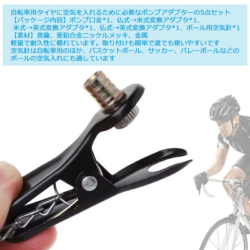 製品内容バルブアダプター×5種 カラーブラック サイズ約62mm*37mm*21mm*7.5mm 保証期間お届け日より1ヶ月自転車用タイヤに空気を入れるために必要なポンプアダプターの5点セット【パッケージ内容】ポンプ口金*1、仏式→米式変換アダプタ*1、米式→英式変換アダプタ*1、仏式→英式変換アダプタ*1、ボール用空気針*1【素材】真鍮、亜鉛合金ニッケルメッキ、金属軽量で耐久性に優れています。取り付けも簡単で誰でも使いやすいです空気針は自転車用のほか、バスケットボール、サッカー、バレーボールなどのボールの空気入れにも適しています 製品内容 バルブアダプター×5種 カラー ブラック サイズ 約62mm*37mm*21mm*7.5mm 保証期間 お届け日より1ヶ月間