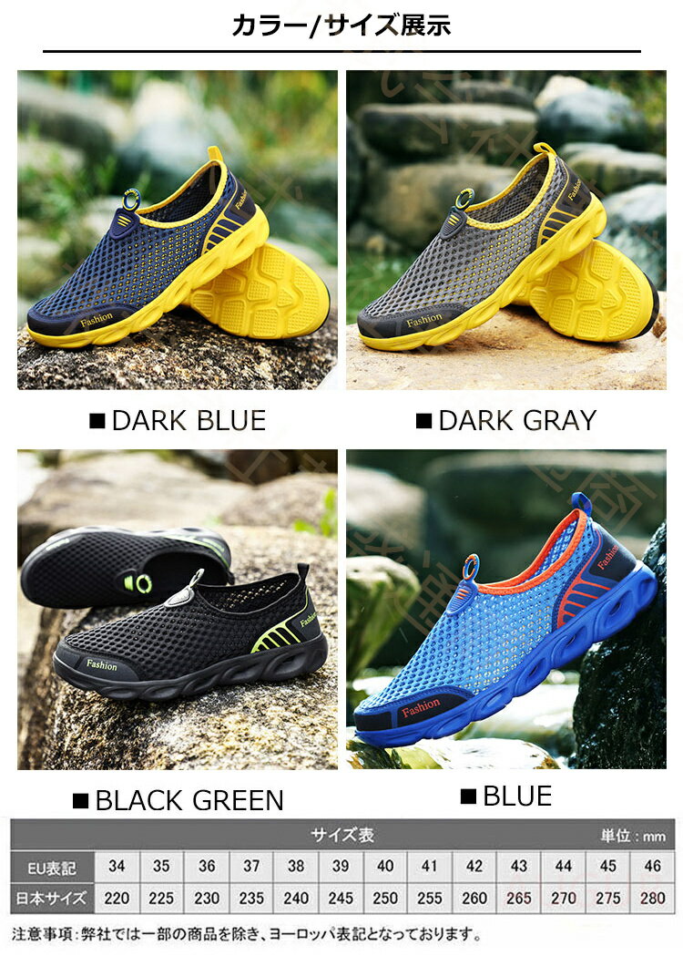 ★素材 アッパー:合成革 メッシュ素材 その他 ソール:EVA ★海・川・公園の水遊びに必須なマリンシューズ! ★紐なしで脱ぎ履きしやすく、煩わしさがありません。 ★厚みのあるアウトソール。柔軟性と耐久性を両立した素材で、足裏をしっかりとホールド。 ★アッパー全体にメッシュ生地を使用しているため、通気性・排水性が良く、シューズ内の蒸れを防ぎる。 ★夏に最適なカジュアルシューズです。 ※要確認:輸入品のため、納期に目安約10日〜15日程度頂きます。 お急ぎの場合は事前にお問い合わせ下さい。予めご了承ください。 メーカー希望小売価格はメーカーカタログに基づいて掲載しています 関連キーワード 靴 フットウェア スニーカー レディースシューズ 運動靴 おしゃれ 通気性 耐久性 耐衝撃 高反発 滑らない 軽量化 オシャレ かわいい メンズスニーカー キッズシューズ ジュニアシューズ シューズ キッズ ガールズ スポーツシューズ ランニングシューズ スポーツ エントリーランナー ウォーキング ジョギング カジュアルシューズ メンズ靴 レディース靴 軽い 軽量 通気 男女兼用 通勤 通学 仕事 上履き スリッポン ゴム 収縮性 フィット感 快適 カジュアル 安定感 楽ちん 歩きやすい 走れる 痛くない ユニセックス 韓国風 柔らか 疲れにく 滑らない 大人 脱ぎやすい 蒸れにくい 幅広 お出かけ 外遊び スクエア 履きやすい おしゃれ 除菌 消臭 丈夫 男性用 登山 旅行 春 夏 秋 冬 高校生 大学生 中学生 耐滑 出張 営業 結婚式 紳士靴 美脚 定番 誕生日 お誕生日 遊園地 プレゼント フィットネス注意 ◆海外輸入品となりますので輸送の際の汚れや、多少の小キズ等ある場合がございます。 また、国産品と比べると、縫製が雑な部分など見受けられるかと思いますので、ご了承下さいませ。 ◆商品写真はできる限り実物の色に近づけるよう加工しておりますが、お客様のお使いのモニター設定、お部屋の照明等により実際の商品と色味が異なる場合がございます。 ※要確認:輸入品のため、納期に目安約10日〜15日程度頂きます。 お急ぎの場合は事前にお問い合わせ下さい。予めご了承ください。関連キーワード 靴 フットウェア スニーカー レディースシューズ 運動靴 おしゃれ 通気性 耐久性 耐衝撃 高反発 滑らない 軽量化 オシャレ かわいい メンズスニーカー キッズシューズ ジュニアシューズ シューズ キッズ ガールズ スポーツシューズ ランニングシューズ スポーツ エントリーランナー ウォーキング ジョギング カジュアルシューズ メンズ靴 レディース靴 軽い 軽量 通気 男女兼用 通勤 通学 仕事 上履き スリッポン ゴム 収縮性 フィット感 快適 カジュアル 安定感 楽ちん 歩きやすい 走れる 痛くない ユニセックス 韓国風 柔らか 疲れにく 滑らない 大人 脱ぎやすい 蒸れにくい 幅広 お出かけ 外遊び スクエア 履きやすい おしゃれ 除菌 消臭 丈夫 男性用 登山 旅行 春 夏 秋 冬 高校生 大学生 中学生 耐滑 出張 営業 結婚式 紳士靴 美脚 定番 誕生日 お誕生日 遊園地 プレゼント フィットネス