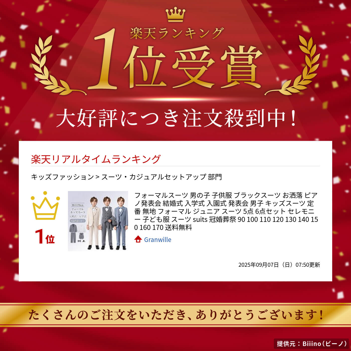 商品詳細 商品特徴 高級感が漂うフォーマルに映える上品な紳士テイストスーツセット。 特別な日にふさわしい華やかさ・かわいさを演出する男の子フォーマル! 格好いい大人っぽいキッズ四季フォマール服装! 日常生活では、ジャケットでもシャツでも、ベストでも、 単独で着てもいい、実用性が高い。 シャツのみ着用の場合も、しっかりとフォーマル感が出ます。 ちょっとした出かけや、卒業式・入学式・結婚式・発表会・七五三・演奏会お受験までオールマイティーに使えるスーツセットです。 仕様 【商品説明】 ◆【内容】: 5点セット:ジャケット/ベスト/パンツ/蝶ネクタイ/ブローチ 6点セット:ジャケット/ベスト/シャツ/パンツ/蝶ネクタイ/ブローチ ◆【素材】:ポリエステル ◆【サイズ】:90cm〜170cm モデル 身長:135cm 体重:28kg モデル着用サイズ:130cm ※大きめのお子様はワンサイズ上がおすすめになります。 ※実寸は平置きでメジャーによる採寸のため、多少の誤差が生じる場合がございます。 商品について: ※実寸は平置きでメジャーによる採寸のため、多少の誤差が生じる場合がございます。 ※メーカーの製品更新により、一部デザイン・パーツ等が若干変更となる場合がございます。予めご了承くださいませ。 ※PC環境・光の具合により、色や素材のイメージが写真と若干異なる場合がございます。 ※モデル・写真に使用されているアクセサリー・小物は別途記載が無い限り付属いたしません。 ※生地の特性上、やや匂いが強く感じられるものもございます。数日のご使用や陰干しなどで気になる匂いはほとんど感じられなくなります。 ※発送上の状態によって商品がシワになる場合がございます。予めご了承くださいませ。 発送について: ※【在庫がある場合】8〜10営業日以内に発送します。 ※在庫確認、配送状況、休日を間にする事により、予定より遅くなる可能性がございます。 ※当店ではラッピングのサービスを行っておりません、ご了承ください。 ※初期不良や弊社都合による著しい発送遅延などが発生した場合は、未使用の商品のみ到着日から30日以内に返品や返金、交換も可能でございます。 ※ご連絡を頂けましたらスムーズに対応できますので、ご協力いただけますようお願い申し上げます。 ※お客様都合の返品返金について、返品送料はお客様負担なります。 メールについて: ※メール返信とご注文対応は、平日10:00〜17:00頃に対応しております。 ※携帯メールでの登録は迷惑メールによりメールが届かない場合がございます。 関連ワード:(※本製品の説明ではありません) 男の子 スーツ 制服 定番 上品 高級 高級感 無地 160 男の子スーツ5点セット 卒業式 入園式 子供服 タキシード 発表会 男の子 結婚式 ジュニア 長袖ジャケット ベスト ズボン チェック柄 5点セット スーツ 男の子 七五三 子供 入学式 フォーマル 子供スーツ 子供服 卒業式 蝶ネクタイ シャツ ジャケット ベスト パンツ 送料無料 紳士服 キッズ 誕生日 入園式 小学生 中学生 DK 男子校生 卒園式 ピアノ発表会 保育園 保育所 退所式 かっこいい90cm 100cm 110cm 120cm 130cm 140cm 150cm 160cm 170cm メーカー希望小売価格はメーカーカタログに基づいて掲載しています