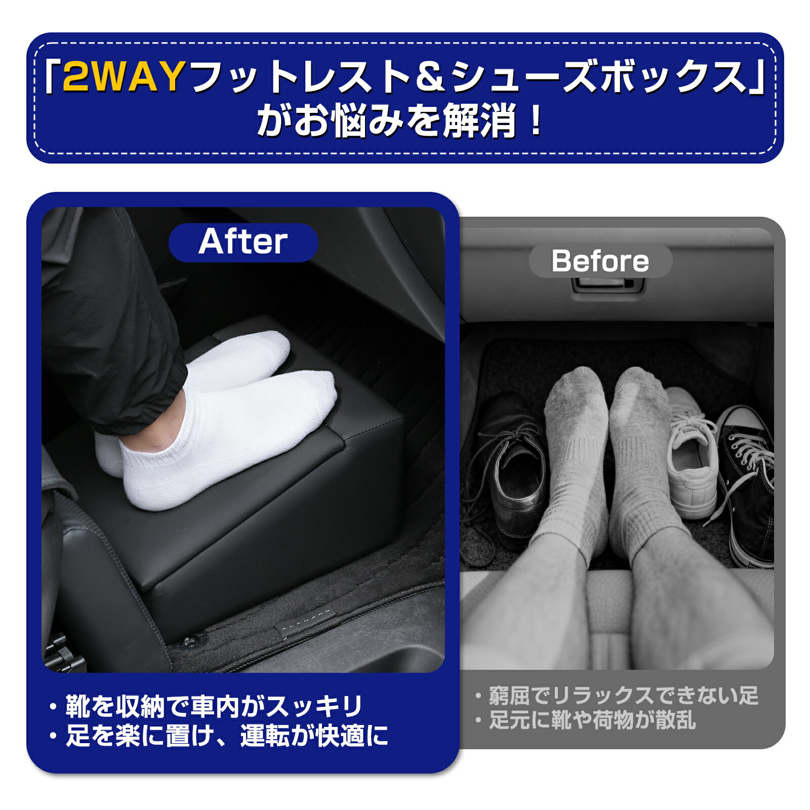 \20%OFFクーポンあり/【ハイエース助手席にオススメ】aurauto 車 用 フットレスト ボックス 2WAY シューズボックス 靴収納 ハイエース 助手席 後部 座席 フットレスト 靴入れ 車用 エブリィ キャラバン トラック 足置き台 踏み台 足枕 小物収納 整理整頓