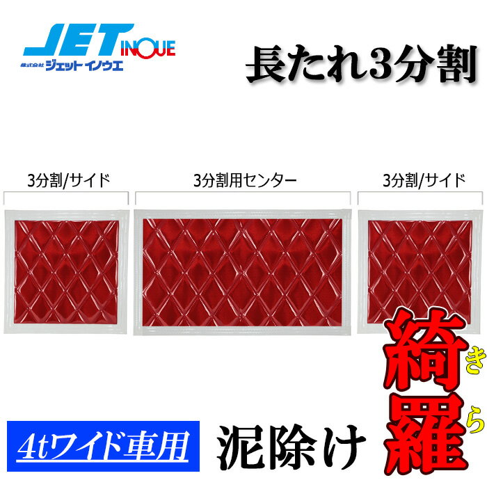 JETINOUE ジェットイノウエ ウレタン入り泥除け「綺羅」 長たれ3分割 3枚セット (赤/白ライン) [4tワイド車用: サイド600x500(x2枚)、センター990x500]