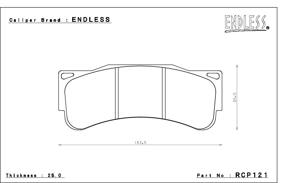 キャリパーメーカーEndlessエンドレスピストン数6備考RacingMONO6(R35を除くフロント)/RacingMONO6r(R35/BNR34/Z33の各リアを除く)メーカー品番RCP121MXPLシリーズMX72プラス構成左右セット材質セミメタリック(セラミックカーボンメタル)温度域50~750℃摩擦係数0.39~0.47μ走行フィールドストリート~サーキットWidth [mm]163.5Height [mm]65.5研磨厚 [mm](※)25.0RD [mm]51.0注意事項※研磨厚=バックプレートを含めたブレーキパッドの厚みになります。※同形状で標準研磨厚の違う商品があるものが有ります。現車に必要な研磨厚のものをご選択ください。※同品番キャリパーが複数掲載されているものがあります。ブレーキパッド形状表でRD(RadialDepth:摩擦材中央部の縦幅)をご確認ください。※画像はサンプルです。実際の商品とは形状・色等が違うことがあります。※ブレーキシステムは重要保安部品です。分解・整備は認証工場または整備工場で行ってください。※製品の仕様や価格の変更、製造及び販売を予告無く中止する場合がございます。※車種別に専用設計品の為、適合車種の情報に全て一致しなければ装着できません。※お客様の見落としや確認ミスでのキャンセル・交換・返品は一切お受けできません。※適合情報は随時更新しておりますが、告知なくメーカー側にて更新される場合がございますので、必ずご注文前にメーカーホームページにて最新の情報をご確認頂ますようお願い致します。納期についてこちらの商品はお取り寄せになります。受注生産品の為、約2ヶ月~お時間を頂きます。お急ぎの場合はご注文前に必ず在庫確認をお願い致します。納期が遅い等によるキャンセルは一切お受けできません。ENDLESS endless Endless Advance Brake pads MX72 PLUS MX72+ エンドレス アドバンス ブレーキパッド ストリート レース サーキットMX72に比べ熱ダレを抑え、さらにサーキット向けへと進化MX72 PLUS "セミメタリックブレーキパッドの定番"であるMX72に比べ、周回を重ねた際に起こる「熱ダレ」を抑えることで、さらなるサーキット向けセミメタリックブレーキパッドへと進化しました。さらには、コントロール性を重視するコンセプトは変わらず、圧倒的な初期制動ではないコントローラブルな効きは、小排気量から大排気量の車種まで最適なブレーキパッドとなります。 こんな人におすすめ◆MX72よりもさらに高温時の制動力・安定性をお求めの方◆サーキットでのタイムアップに伴いMX72が物足りなくなってきた方◆ミニバンやSUVなど、重量がありながらブレーキ容量が少ない車種にお乗りで「もっと効くパッドが欲しい」という方