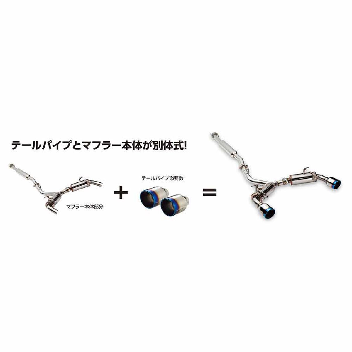 ■テールパイプを自在に交換可能なマフラー「カスタムエディション」登場!■マフラー本体とテール部分が別体となった新構造を採用しました。■この構造によりテールパイプの交換およびボディからの突き出し量を容易に変更が可能です。■テール部分をスライドさせることで、ボディからの突出量を調整することが可能です。■マフラー本体は鏡面仕上げによる上質な輝きと高い耐久性を誇るSUS304オールステンレスマフラーです。■排気効率にもこだわり車種別に専用設計された、パイプレイアウトとサイレンサーサイズを採用しました。■新制度「交換用マフラーの事前認証制度」取得済みで車検も問題なくクリアします。※装着が正しく行われ経年劣化していない場合。※画像はイメージです。■品番:63557■シリーズ:NUR-SPEC CUSTOM EDITION VS Quad■テール径:108オーバル■テール本数:4■パイプ径:50-50×2、ステンレス■トヨタ カローラスポーツ・型式:NRE210H 年式:18/06- エンジン型式:8NR-FTS 排ガス記号:3BA-・TURBO専用,MT/AT共通,BLITZリアディフューザー装着車共通,新制度適合お車のタイプ・年式・型式により適合が異なります。「車種適合」をご確認のうえ、ご購入をお願いします。 適合品商品であるため、ご注文後の商品の交換・返品はご遠慮ください。 本商品はお客様からのご注文をもって、メーカーより取り寄せいたします。 ご注文後、『欠品』・『生産終了』・『納期未定』等により、納期のご希望に添えない、もしくは、ご注文をお断りしなければならない場合がございます。予めご了承ください。