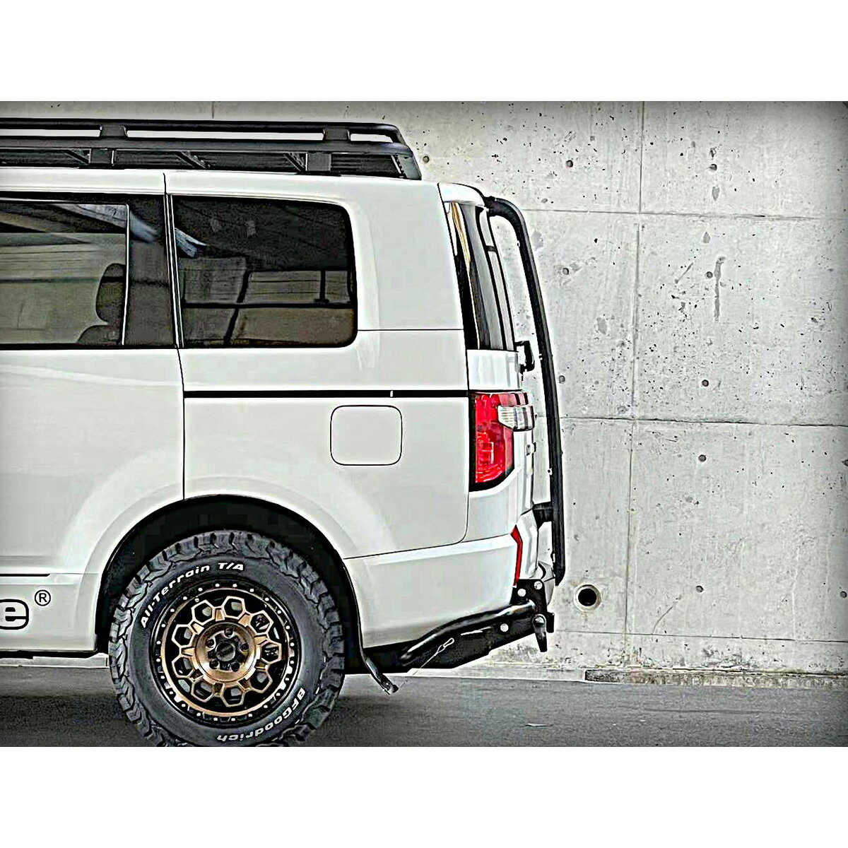 ■ラダーステップ部分をシルバーからブラックへと変更!■ルーフラック・キャリアを装着すると、荷物の積み込みにリアラダーが欲しくなりますが結構高い!そこで、デザイン性に優れ安価な組み立て式のラダーを企画しました。■アルミ押し出し鋼を駆使し、軽量と高剛性を両立させると同時に、どのメーカーの製品にも似ていないデザインとすることが出来ました。■もちろんメーカー製品に共通する、耐食性に優れたカチオン処理と高品質のパウダーコート&アルマイト処理も怠りません。■組み立て式としたことで、お届けまでの配送コストにも配慮し、トータルでコストパフォーマンスに優れた仕様としています。■一段目の踏板を極力低く設計、全体を幅広に設計したので、荷物の積み下ろしが超絶楽に!■メインシャフト:アルミ押し出し材+ブラックパウダーコート■ステップ:アルミ押し出し材+ブラックパウダーコード■製品重量:5.2kg■耐荷重:垂直方向100kg■適合車種:ミツビシ デリカD:5(全グレード)※本製品はリアナンバープレートの封印を取り外して装着する必要があります。※封印の取り扱い資格を有する整備工場などでの作業をお願い致します。※装着後は必ずお近くの自動車登録事務所で、ナンバープレートの再封印の手続きをお願い致します。※封印の再利用は法律により禁止されております。絶対にしないでください。●純正ルーフスポイラー付き車両には同時装着できません。 【リアラダー装着可】X4Xリアスポイラー を販売中です。●リアラダーを取り付けた後に、【リアラダー装着可】X4Xリアスポイラーの取り付けをしてください 。※本商品はお客様からのご注文をもって、メーカーより取り寄せいたします。※ご注文後の商品のキャンセル・交換・返品はご遠慮頂いております。※ご注文後、『欠品』・『生産終了』・『納期未定』等により、納期のご希望に添えない、もしくは、ご注文をお断りしなければならない場合がございます。予めご了承ください。※ご使用の前に必ず取扱説明書をよく読み正しくお使いください。※画像はイメージの為、実際の商品とは異なる場合がございます。