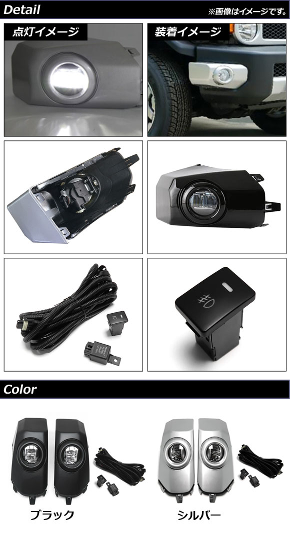 LEDフォグランプセット トヨタ FJクルーザー GSJ15W 2010年12月〜2018年01月 ブラック ABS製 リレーハーネス付き AP-FL328-BK 入数:1セット(左右) fog lamp set