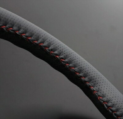 ジムニー JB23W (10型) オールレザーステアリング ガングリップ ブラックレザー/レッドスティッチ