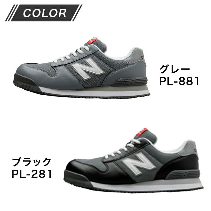 商 品 説 明 PL-881/PL-551/PL-331/PL-281 ニューバランス New Balance 人工皮革製プロスニーカー New Balance pro sneakerはすべて JSAA A種 認定品です。 1. 先芯部の耐衝撃性能 試験 重量物の落下衝撃からつま先を守る性能 2. 先芯部の耐圧迫性能 試験 重量物の荷重からつま先を守る性能 3. 表底のはく離抵抗 試験 表底と甲被の接着性能 JSAA規格で製品と認められるにはこれらの基本性能試験をクリアする必要があります。 【特徴】 Wide Toe Cap 樹脂製先芯(全モデル) 足に優しい新設計のワイドな樹脂先芯。(ナイロンファイバー製) TPR Counter 成型月型(全モデル) 熱可塑性樹脂製の月型でしっかりと踵をホールドします。 TPU Stabilizer 踵安定装置(全モデル) ニューバランスのスタビライザーはTPR月型とセットで安定効果を高めます。 5N Craft Sole 耐油ラバーソール(全モデル) 耐油・耐摩耗性に優れた合成ゴム使用 3M Reflector 再帰反射素材(全モデル) 反射輝度に優れた3M社製を使用。暗所での作業の安全性を高めます。 Soft Bending ソフトベンディング(Portland) 中足骨をホールドし、踵の浮きを抑え、前足部の屈曲をフリーにします。 Portland 規格 : JSAA規格 A種 人工皮革製プロスニーカー 衝撃吸収 製法 セメント式 先芯 樹脂製 (ワイド) 甲被 PU + エアーメッシュ 靴底 EVA + ラバー サイズ 24.5〜28,29,30cm EEE(PL-281、PL-551) 22.5〜28,29,30cm EEE(PL-331、PL-881)