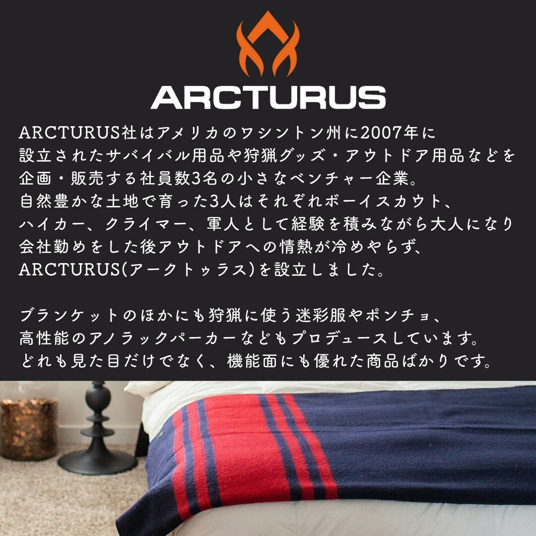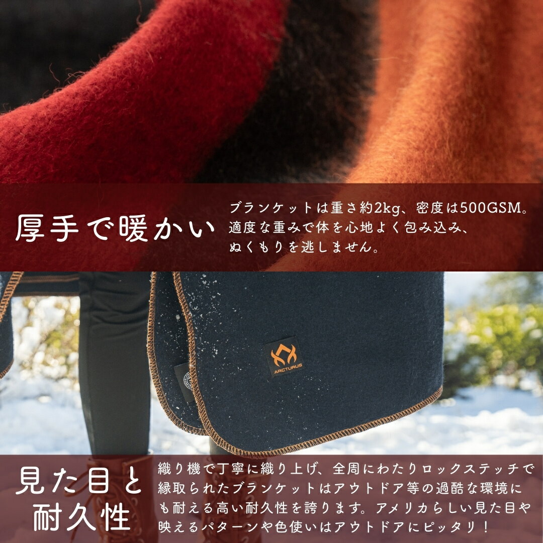 ARCTURUS ウールブランケット お洒落で暖かい 大判サイズ 耐久性 アウトドア リビング 車内 キャンプ チェック柄 防災 サバイバル プレゼント ひざ掛け 羊毛 アメリカブランド 即納