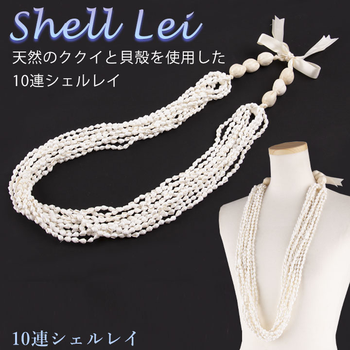 即納★ 10連シェルレイ [CN-GD007-3686] フラダンス フラ フラダンス衣装 フラ衣装 レイ アクセサリー 衣装 小物 シェル 貝殻 ハワイアン ホワイト 天然 衣装小物 発表会 ダンス フラアクセサリー フラダンスアクセサリー ハワイ ハワイアン