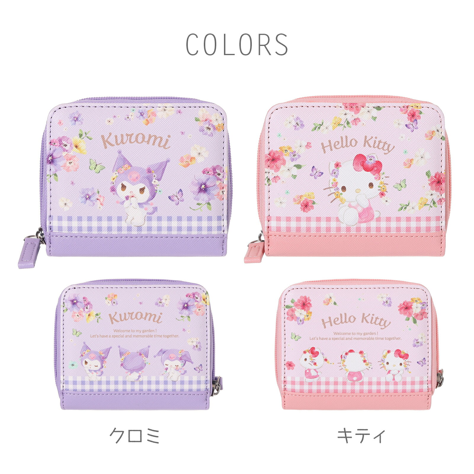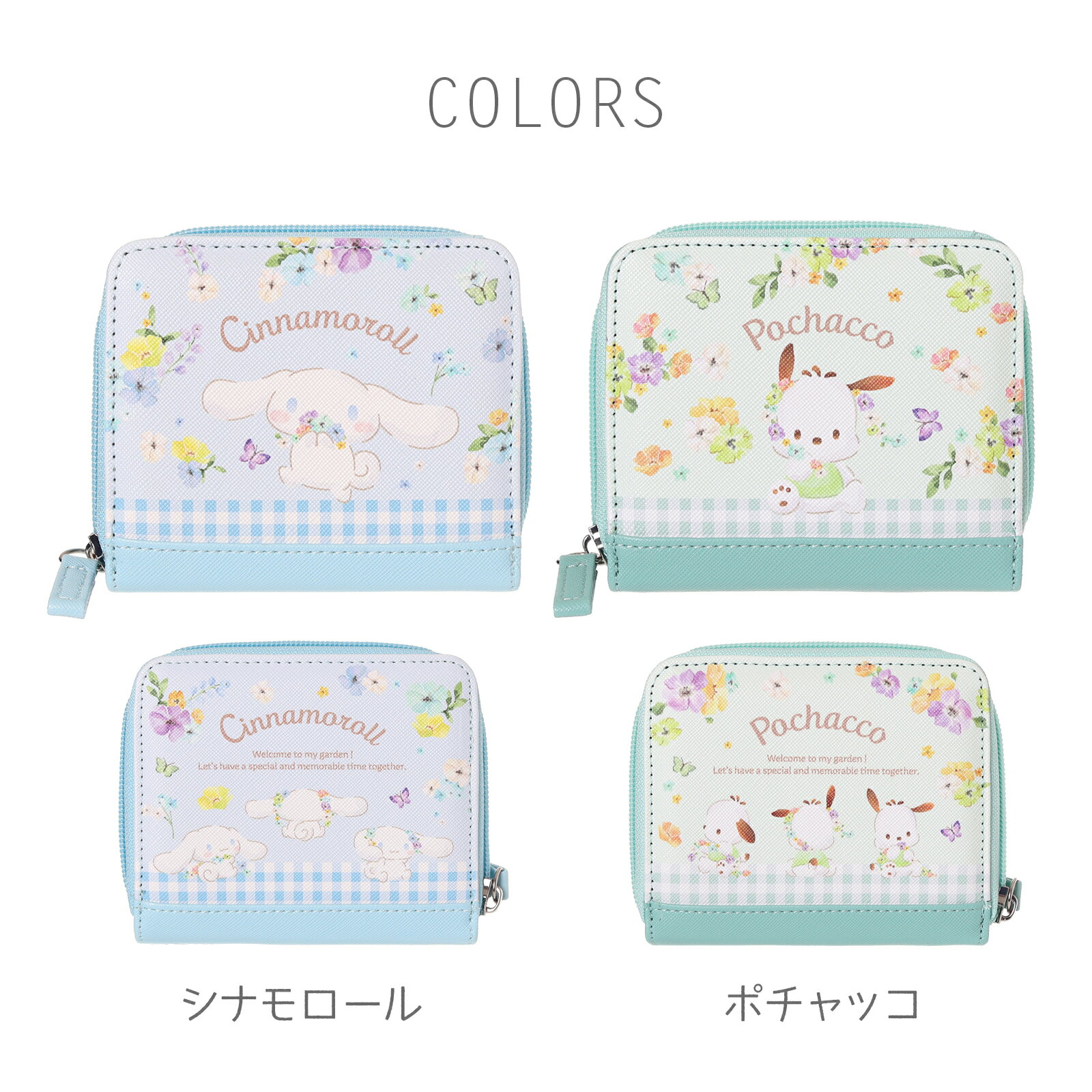 サンリオ 二つ折り 財布 ラウンドファスナー 合皮 札入 フラワー 水彩