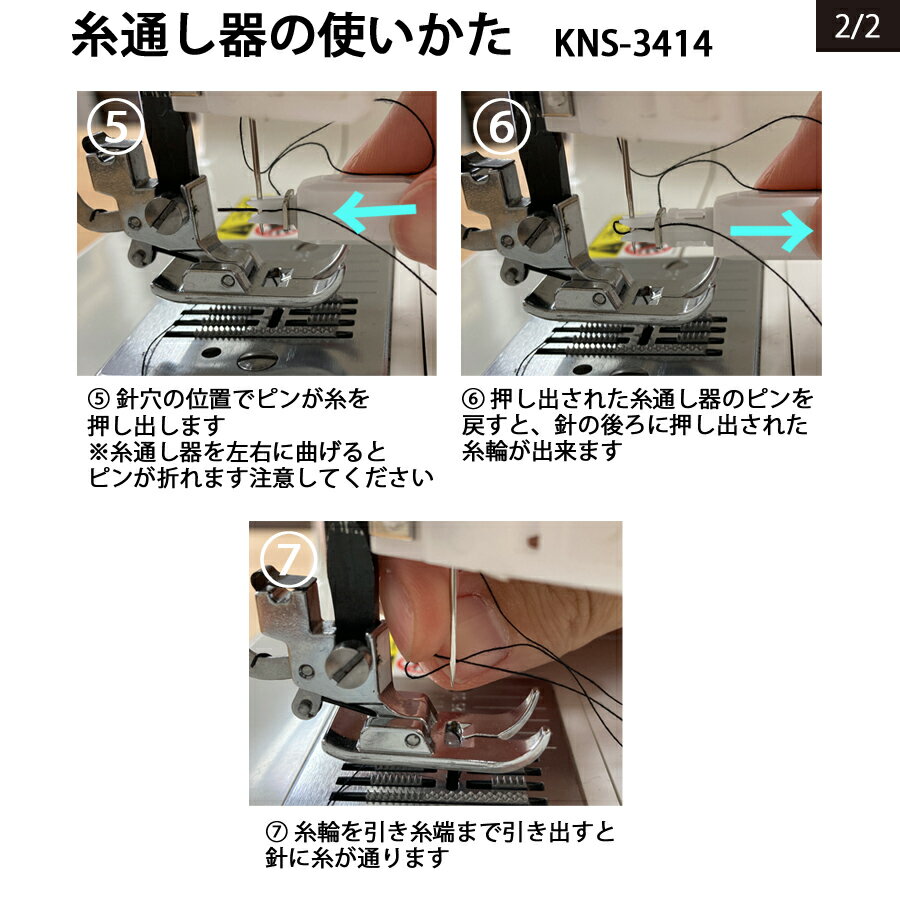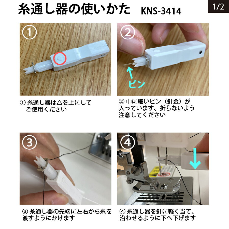 商品名 簡易糸通し器 用途 本体に糸通し器がついていない家庭用ミシンにご使用いただけます。簡単に針穴糸通しが可能です。 サイズ 全長5.8cm×幅1.9cm 配送 ポスト投函(単品でのご注文の場合) ※【代引き】決済はご利用頂けません(宅配商品の同梱は除く) 荷姿 封筒 備考 #30以上のミシン糸ではご使用できません ◎簡易糸通し器の使い方 ○ 対応機種※必ずご確認ください 一般的な家庭用ミシン・職業用ミシン全機種対応 ◎ 送料一律330円(税込)/ミシンと同時購入の場合、送料無料 ◎ お届け日時の指定はできません ◎ 宅配商品と同時注文の場合は同梱させていただく場合がございます ◎ 当店取り扱い商品以外の対応機種はお手数ですがお問い合わせください。型式ごとにご回答させていただきます。 【問い合わせ先】0120-40-5851/メールフォームはこちら 関連キーワード: ミシンアタッチメント 家庭用ミシン 簡易糸通し器 針穴糸通し ミシン上糸掛け メンテナンス 使いやすい