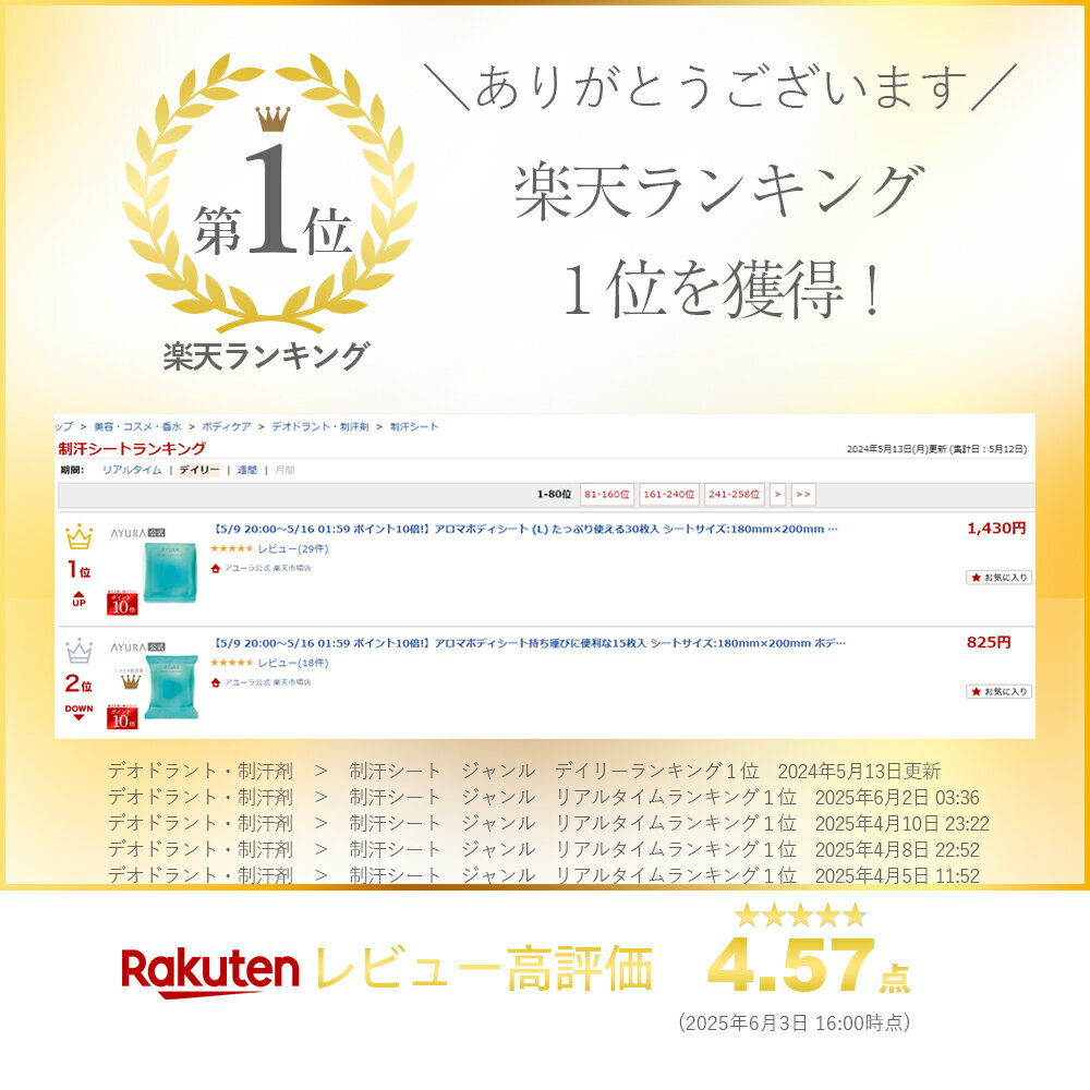 アロマボディシート持ち運びに便利な15枚入 シートサイズ:180mm×200mm ボディ用シートアユーラayura