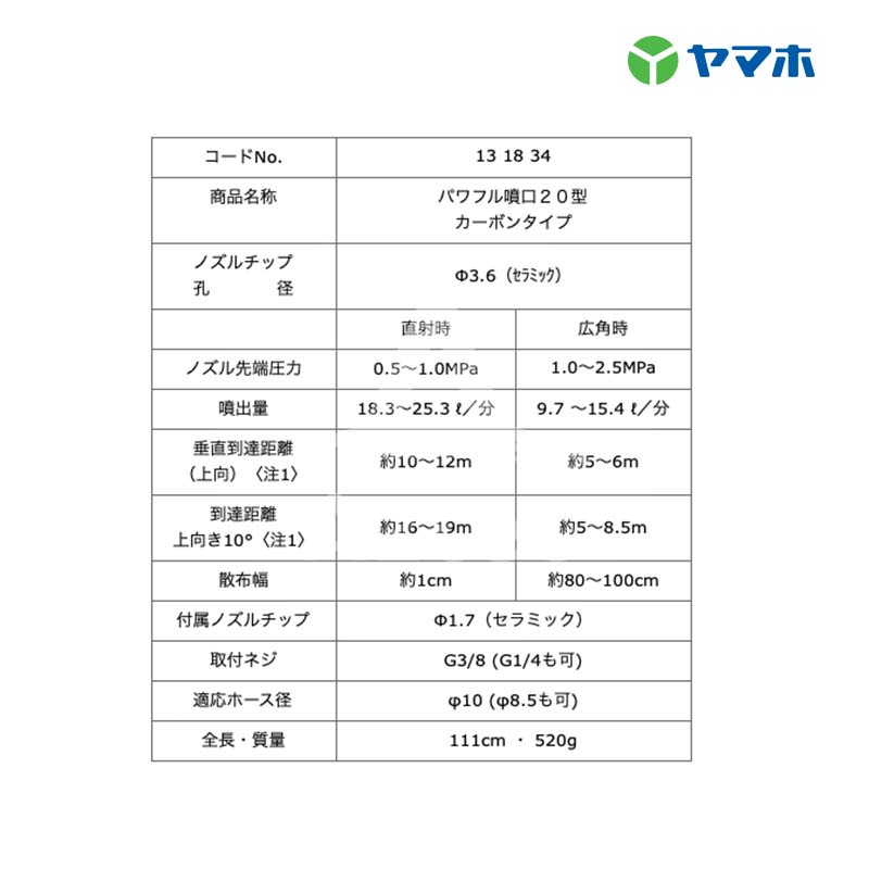 !!エントリーで最大100%ポイントバック!! ヤマホ 高木・遠距離防除・洗浄 パワフル噴口20型カーボンタイプ G3/8 131834 法人様限定