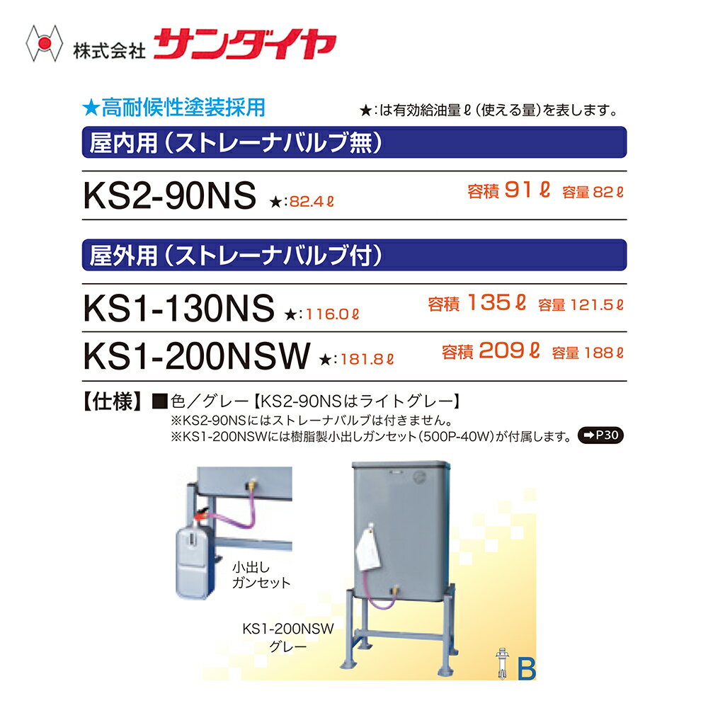!!エントリーで最大100%ポイントバック!! サンダイヤ 灯油タンク 屋外用 容量188L 小出しデザインタンク 200型 SUNDIA KS1-200NSW