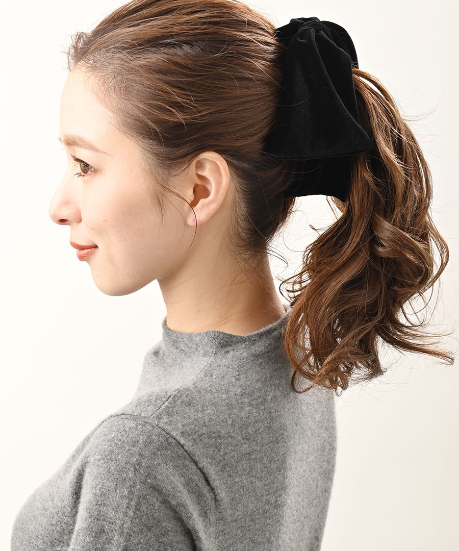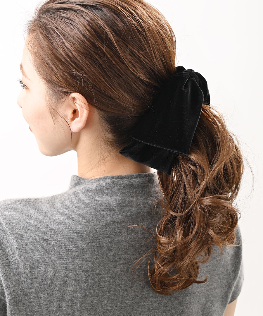 ★ネコポス送料無料★バナナクリップ ベロア 縦クリップ トップリボン リボン ヘアアクセサリー 上品 大人カジュアル ギフト プレゼント 女性 秋冬 H7630【mbgt】