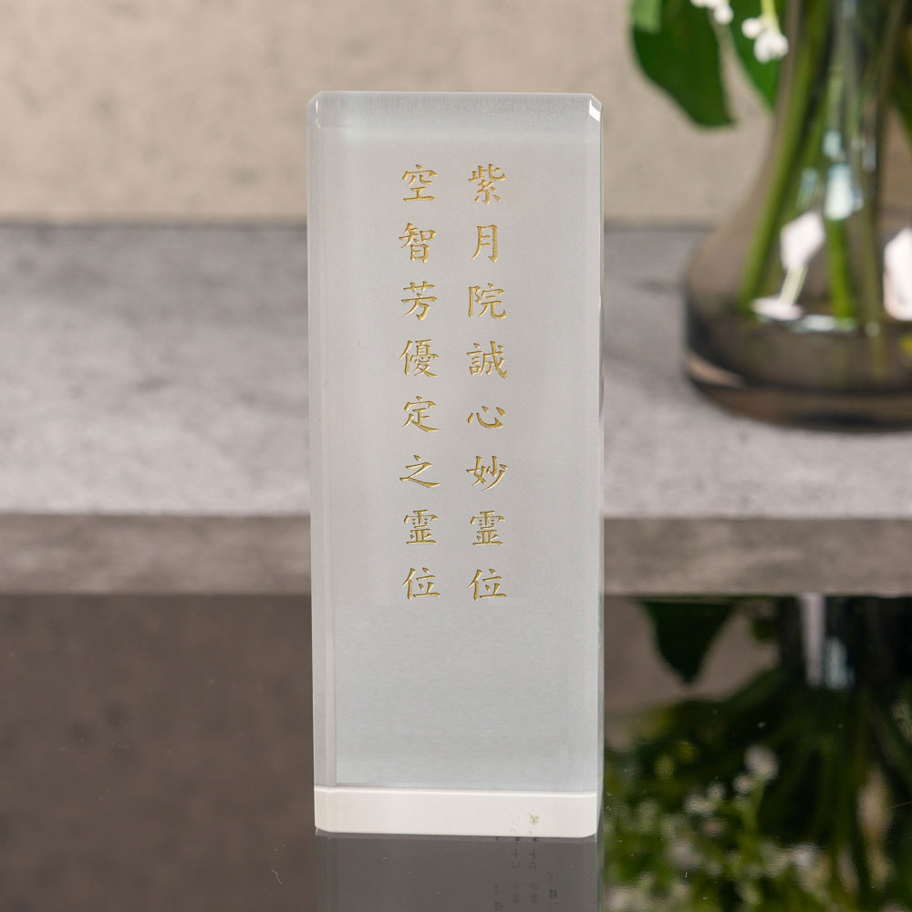 【白雪】 Shirayuki 位牌 白くて綺麗なお位牌 柱体 すりガラス 手元供養 華やか おしゃれ 仏具 メモリアル オーダーメイド クリスタル位牌 水子供養 49日法要 モダン位牌 水子位牌 法名 法名碑 法名軸 いひ いはい ihai 戒名入れ メモリアルモニュメント 送料無料