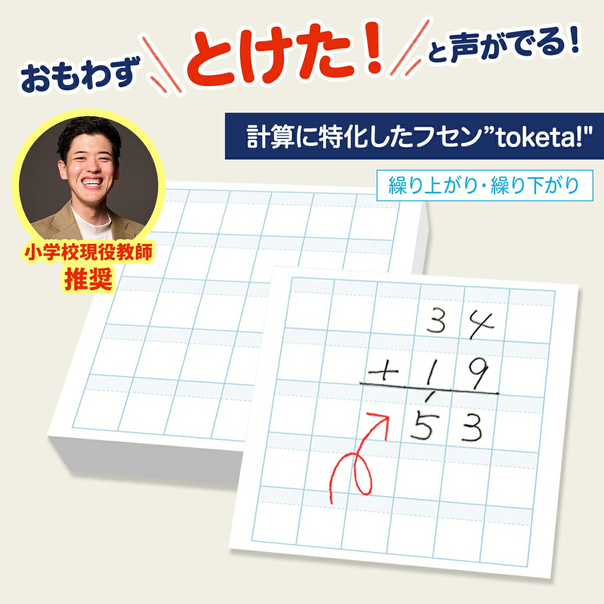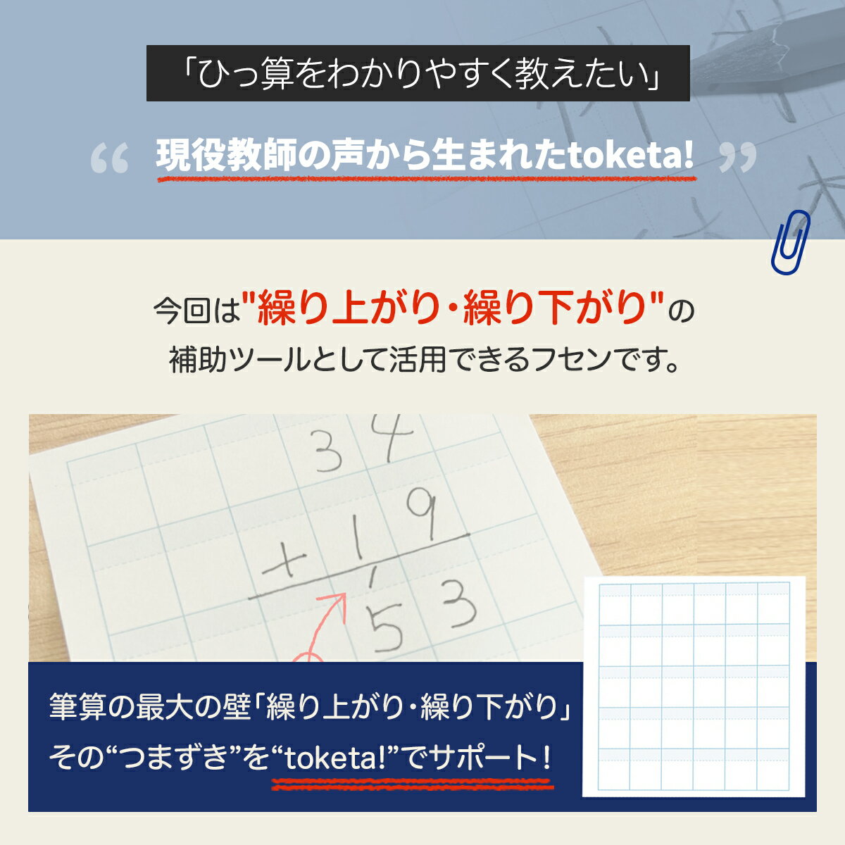 【公式販売店】計算用フセン Toketa! 繰り上がり・繰り下がり +teacher 計算フセン プラスティーチャー 計算 筆算 フセン 付箋 ふせん 罫線 算数 数学 宿題 復習 学習 練習 指導 反復 学校 小学校 塾 ノート 問題集 教科書 メモ 授業