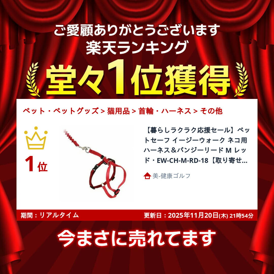 【暮らしラクラク応援セール】ペットセーフ イージーウォーク ネコ用ハーネス&バンジーリード M レッド・EW-CH-M-RD-18【取り寄せ・返品不可商品】