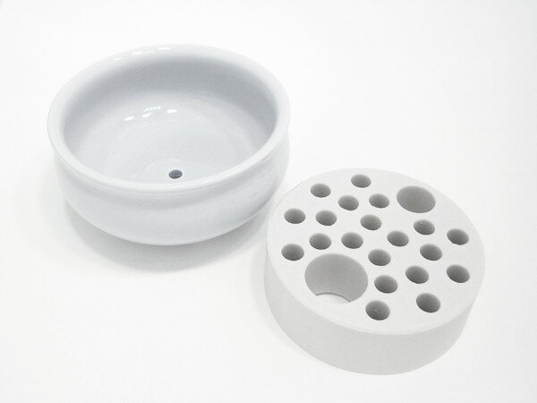【香炉】【お墓用線香立て】 白磁 多孔盤付香炉 大 3.5寸 陶器製【墓石用】【カラツ】