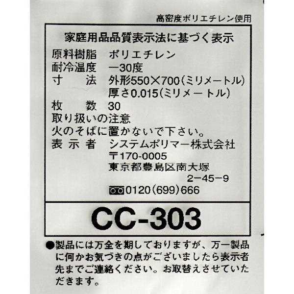ポリ袋、30枚入りです。半透明の移動に便利な手提げ付きのポリ袋です。手提げ部を結べます。マチ付きでたっぷり入ります。2リットルのペットボトルが約8本入る容量です。分別回収用や食品類の保管等にオススメです。高密度ポリエチレン使用で燃やしても有毒なガスが発生しません。※取り出し口のミシン目がはじけている(開いている、はずれている)事がございますが良品とみなしますのでご了承ください●1枚のサイズ・380×700×マチ170×厚さ0.015mm●色・半透明●耐冷-30度●原料樹脂・ポリエチレン●用途・ポリ袋 ビニール袋 買い物袋 レジ袋 掃除 収納 分別 ゴミ袋●キーワード・ふくろ ぽりぶくろ てさげ ごみぶくろ びにーる そうじ れじ●シリーズ名・POLI●品名・手提付ポリ 30L 半透明 30P●品番・CC-303 HD .015(380+170)X700●JAN・4997495000560●メーカー名・システムポリマー(株)●管理単位・10個/40個●入数・30枚