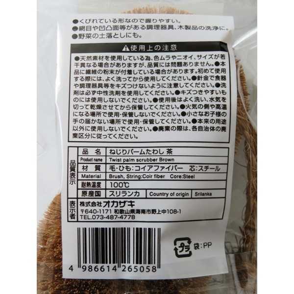 ねじりパームたわし 茶 (100円ショップ 100円均一 100均一 100均)