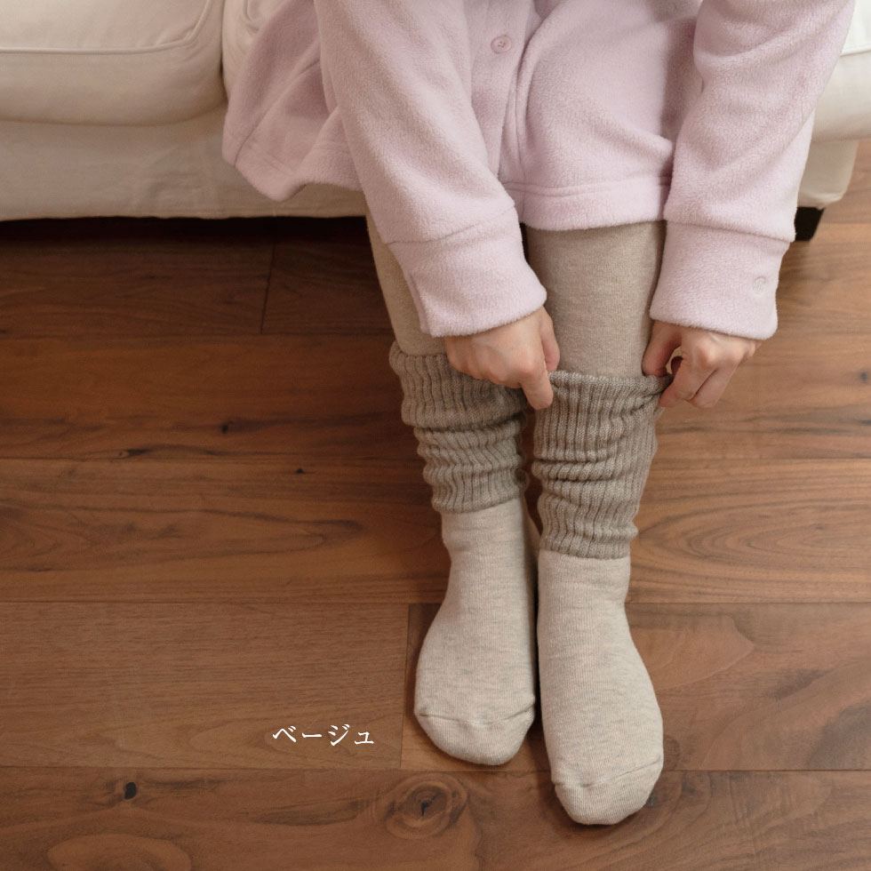 足首から上は二重編みのレッグウォーマー、足首から足先まではふわふわ裏パイル。あたたかいメリノウールをたっぷり使った厚手ソックスです。細めのウールを使い、独特のチクチク感を抑えています。足裏や足の甲は柔らかい高密度のパイルに包まれ、床の冷たさもほとんど感じないほど。クッション性があるため、冬のウォーキングやウィンタースポーツなどにもおすすめです。足首のレッグウォーマー部分を伸ばすと、ふくらはぎの中ほどまでのクルーソックス丈。パンツスタイルにも合わせられます。締め付けないのにゆるすぎない、ずり落ちにくいフィット感。くしゅっとたるませて履くのもおしゃれです。極厚生地ですので、主に室内でのリラックスタイムに。外出の際は大きめサイズの靴やブーツと合わせてお楽しみください。分類ファッション小物・グッズ、あったかグッズ、ホームウェアアイテム&代替可 靴下、ソックス(ルームソックス)、室内履き、ハイソックス、レギュラーソックス、ルーズソックスセールスポイント厚手、あったか・暖かい、あたたかい、防寒対策、寒さ対策、冷え防止、温活(温活グッズ)、上質、人気、おすすめ、喜ばれる、貰って嬉しい、肌触りがいいデザイン詳細レッグウォーマー、無地、レギュラーソックステイストナチュラル、シンプルシーン睡眠(快眠・安眠)、おうち時間、室内、ガーデニング、妊活特記あったか靴下、締め付けない、ゆるいソックス、暖かい靴下、パイル極厚、ふっくら、ほかほか、ぽかぽか(ポカポカ)素材ウール生地の種類/外観特性パイル編み、リブニットターゲットレディース(女性・婦人 用・ミセス・妊婦・マタニティ)、メンズ(男性・紳士 用)対象年齢または対象年代10代、20代、30代、40代、50代、60代、70代、80代、90代サイズ特記23〜25cm、25〜27cm、かかとから履き口まで約18cm活用シーズン秋 冬(秋冬)用、冬用、真冬(真冬用)シーズナルイベントにも実用的でおすすめ・出産祝い ママへ ママ ギフト・誕生日プレゼント 女性 母 女友達 ギフトその他 プレゼント・ギフト・贈り物としてのオススメ用途敬老の日(敬老の日プレゼント・敬老の日ギフト)、クリスマスプレゼント、バレンタインデー、ホワイトデー、母の日、父の日、プチギフト、お見舞い、贈答品、還暦祝いギフトオススメ対象妻(女房・嫁・奥さん)、母親(お母さん・おかあさん・義理母)、おばあちゃん、伯母(叔母)、彼女、友達(友だち・友人)ブランドニットウィンあたたかいメリノウールをたっぷり使った極厚ソックス分厚い裏パイル靴下とリブ編みのレッグウォーマーを組み合わせたような、超厚手のあったかソックス。足首から先はたっぷり裏パイル、足首から上はふんわり二重編みのリブでレッグウォーマーのようになる靴下です。細いメリノウールを使用したチクチク感が少ないウールソックスなので、足先・かかと・足首・ふくらはぎまでを柔らかいフィット感で包んでくれます。敏感肌の方はレギンスや薄手の靴下と重ね履きするのもおすすめ。足元の冷えにお悩みの女性や、冬のフローリングが冷たいと感じている男性にぜひ履いていただきたい、手放せなくなる冬用あったかルームソックスです。ウールって、なぜあたたかいの?メリノウールの中でも細い平均繊度19.5ミクロンの「エクストラファインメリノ」を使用しています。セーターなどに使われることの多い細めの繊維なので、ウール独特のチクチクする刺激が少ないソックスです。ウール=羊毛がなぜあたたかいのかというと、一本一本の繊維が縮れていて、それらが複雑にからまることで間に空気が溜まり、その空気の層によって断熱効果が高まるからです。さらに、ウール自体の熱伝導率は綿の半分、ナイロンの5分の1しかなく、断熱効果が高いのも特徴。それらの相乗効果によって温かさが保たれるのです。あたたかさを閉じ込める、ユニークなかたち爪先からくるぶし部分までは、裏側がふわふわモコモコのパイル地。パイルの間に空気の層をつくり、そこにあたたかさを閉じ込めます。ヒヤッとする冬の床面の冷たさも感じにくい分厚さです。くるぶしから上の部分は、ざっくりとしたリブを長く編んで折り返し、二重にすることで温かい空気の層をつくっています。履き口もソフトな感触で締めつけ感が少ない靴下です。汗にもニオイにも強い天然素材厚手のソックスを履いていて、最初は温かかったのにいつのまにか足先が冷たくなっている……ということはありませんか?それは足裏の汗のせいかも。汗は気化する時に体の熱を奪います。温かくなりすぎて足の裏にかいた汗がいつまでも蒸発しないと、次第に足が冷えていきます。ウールは吸湿性・放湿性の高い素材。吸湿率はコットンの2倍、ポリエステルの40倍と言われています。もともと羊の体温調節機能を担っていたのですから、「天然のエアコン」と言われるほど体温調節を助けて快適さを維持できるのもうなずけます。さらに、ウールは繊維の