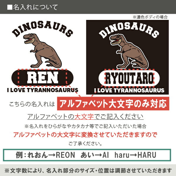 名入れ 長袖 Tシャツ 恐竜 [ダイナソー]出産祝い プレゼント dinosaurs ティラノサウルス スピノサウルス プテラノドン モササウルス トリケラトプス ステゴサウルス ヴェラキラプトル 恐竜グッズ ベビー おそろい lt