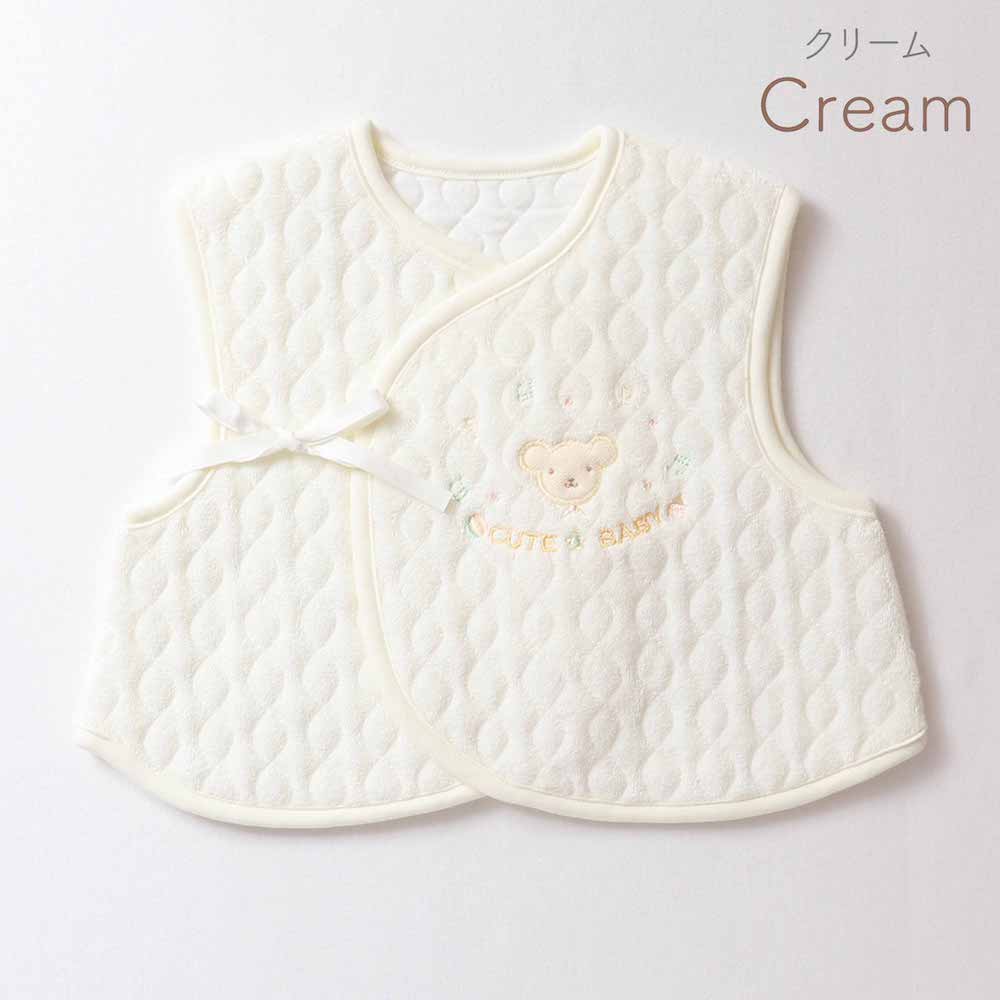 【日本製】 くま 刺繍 ベスト 新生児 赤ちゃん ベビー服 50-70cm パイル あったか 上着 お風呂上がり かわいい 男の子 女の子 綿100% 【春秋冬向け素材】 34208