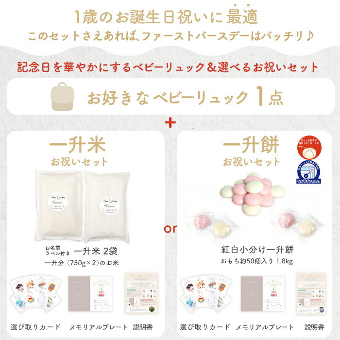 令和7年産 新米 ワッフル ベビーリュック + 一升餅セット or 一升米セット くすみ ベビー リュック ふわもこ 一升餅リュック 名入れ無料 1歳 誕生日 プレゼント 1才 小分け 一升餅 贈り物 ギフト 男の子 女の子 ブランド 出産祝い