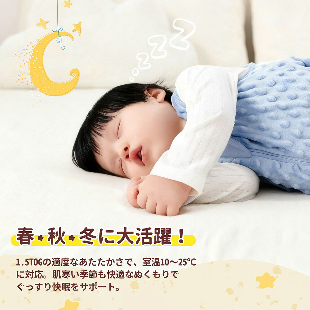 1.5TOG、10-25度 、秋 冬用のベビー寝袋です。 双方向のファスナーで夜間のオムツ変えに便利 お布団を蹴って、めくれる心配もないのです! 出産祝い、クリスマスプレゼント、お誕生日、バースデープレゼント、お祝いの贈答にピッタリです。 サイズ:S 着丈:66cm バスト:31cm 推奨身長:小なり67cm 参考年齢:新生児から6ヶ月 M 着丈:76cm バスト:33cm 推奨身長:小なり77cm 参考年齢: 6ヶ月から12ヶ月 L 着丈:86cm バスト:35cm 推奨身長:小なり87cm 参考年齢:12ヶ月から24ヶ月 注意事項 ・当店の商品は全て国内から配送されます。 ・国内配送の商品は国内でのお買い物と同じく消費税が発生いたします。関税はかかりません。 *色がある場合、モニターの発色の具合によって実際のものと色が異なる場合がある。
