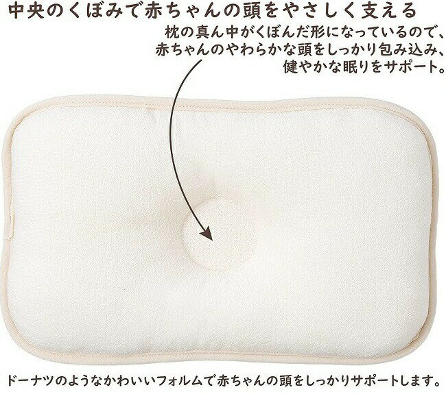 ★西川のベビー用ドーナツまくら ★側生地にはオーガニックコットン使用 ★お医者さんも推薦、 頭をやさしく支えるドーナツ枕 ★家庭で丸洗いできます ★商品サイズ(約)/21cm×34cm×高さ4cm ★1〜2歳頃の赤ちゃんに最適です ★組成 ・側生地 パイル部分/綿100%(オーガニックコットン) グランド部分/ポリエステル100% メッシュ部分/ポリエステル100% ・詰めもの 中わた/ポリエステル100% パイプ/ポリエチレン ★日本製 ★発売元/西川株式会社 ※うつ伏せ寝時には使用しないでください