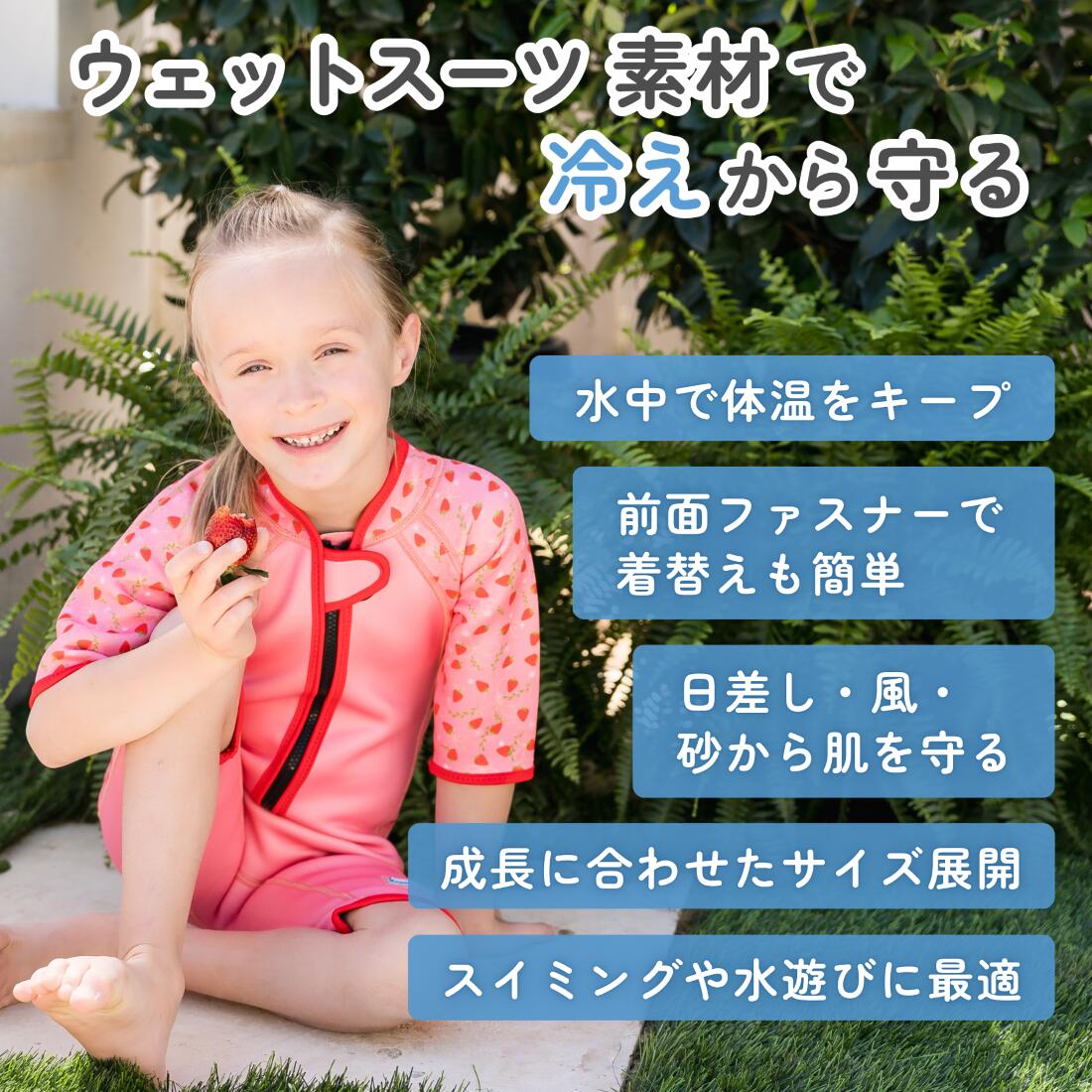 商品詳細 サイズ ■XSサイズ(2歳‐4歳) (胸囲54cm / 着丈38cm) ■Sサイズ(4歳‐6歳) (胸囲57cm / 着丈44cm) ■Mサイズ(6歳‐8歳) (胸囲62cm / 着丈48.5cm) ■Lサイズ(8歳‐10歳) (胸囲70cm / 着丈55cm) 特徴 【優れた保温性と柔軟性】2mm厚のウエットスーツ素材が、お子さまの体温をしっかりとキープ。水の冷たさから体を守りながらも、柔軟性に優れた素材で快適な着心地を実現しています。海やビーチ、プールなど様々なシーンで活躍する一着です。 【実用性を重視した前面ファスナー】スイミング前後の着替えをスムーズにするため、前面ファスナーを採用。濡れた状態でも脱ぎ着しやすく、手間のかからない構造で実用性を重視した設計です。水着の上からも着用しやすく、保護者にとっても扱いやすい仕様です。 【動きやすく快適な構造】柔らかく伸縮性のある素材と、腕や脚を露出した設計により、泳ぎやすさと動きやすさを両立。水中でも陸上でも自由に動けるため、アクティブなお子さまにぴったりです。長時間でもストレスを感じにくい構造です。 【日差しや擦れから肌を守る素材】高品質なウェットスーツ素材を採用し、お子さまの肌をしっかり保護。日差しによる日焼けや水辺での擦れ・冷えから守る機能性が特長です。紫外線対策に配慮したUPF50+のUVカット機能付きで、屋外のビーチやプールでも重宝します。 【男女別デザイン&ギフトにも最適】男の子・女の子それぞれに合ったカラーやデザインをご用意。兄弟・姉妹でのおそろいコーデもおすすめです。実用性と品質に優れ、出産祝いや誕生日プレゼントとしても喜ばれるアイテムです。 素材 合成ゴム、ナイロン、ポリエステルSplash About スプラッシュアバウト ウエットスーツ 素材 キッズ ベビー 水着 ベビースイミング ウェットスーツ スイムウェア 保温 プール ビーチ 水遊び ラッシュガード 川遊び アウトドア 男の子 女の子