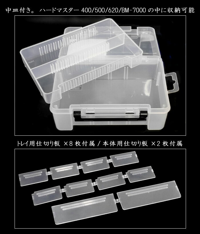 MEIHO/メイホーSystem Tray Case HD/システムトレイケースHD◆サイズ:178×120×60mm◆素材:ポリプロピレン◆付属:トレイ用仕切り板×8枚/本体用仕切り板×2枚★中皿付き。ハードマスター400/500/620/BM-7000の中に収納可能。小物などを収納するのにとっても便利です。