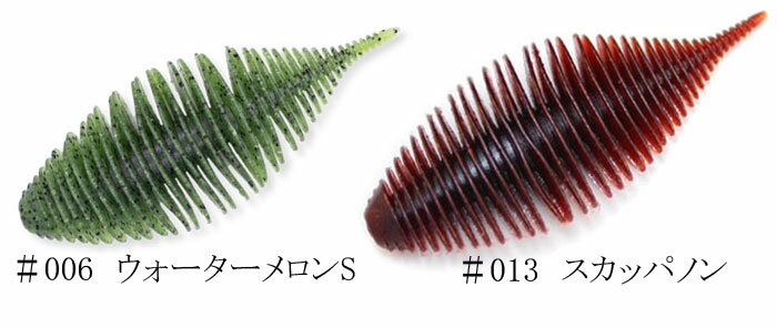 GEECRACK/ジークラックBELLOWS GILL/ベローズギル◆2.8インチ ◆入り数:6本 ◆マテリアル:オリジナルS.A.Fマテリアル ※ソルトイン、アミノ酸、ストロングエビフォーミュラー配合◆推奨フック:(Zappu社)パイルドライバー#2★水噛み最強ワーム!ベローズのギルシェイプバージョン! ボディー全体がリブ形状になっていることにより魚が口にした時、違和感なく奥まで吸い込んでしまう。 全身リブ形状にすることにより、最強の水噛みと、しっかりとした波動、ナチュラルなアクションを手に入れた。●特徴-1 繊細で深溝なボディーのリング形状により、 しっかりとくわえさせ、しっかりと水を噛み、しっかりと味と匂いを伝える。 ●特徴-2 テールの先まで続くリング形状により テールの先端までナチュラルアクションをしっかりとした伝えます。 ●特徴-3 幅広ボディーですが厚みはさほどありません。 リング形状ですので縦にもウネリ横にもウネる独特なアクションです。※ベローズギル2.8/3.8は共にFECO認定商品です。
