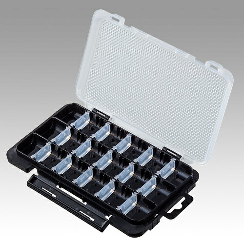 メイホウ (MEIHO) ライトゲームケースJ ■サイズ:175×105×18mm ■素材:ポリプロピレン ■備考:可変仕切板15枚付 状況に合わせてワームの種類やカラ―を持てるだけ持って行きたい。 尚且つ、機動力を損なわずにランガンしたい。 そんな相反するアングラーの欲求を可能にするのがこのケース。 厚さわずか“18mm”に設計することでかさ張ることなく持ち運びが可能。 さらに、2つのケースを簡易ドッキングでき、蓋にはワームスリップ加工を採用。 ランガンシステムBOX上段にジャストフィットするサイズ設計。 ライトゲームアングラーを手厚くサポートするケースです。