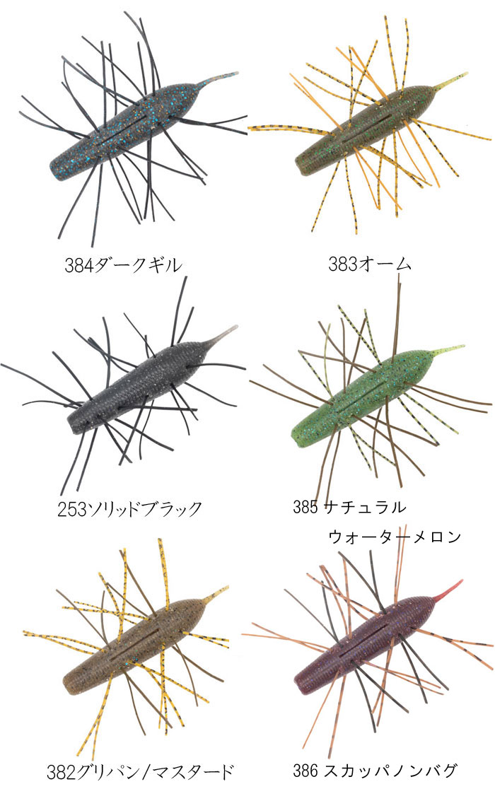 GEECRACK/ジークラック IMOKEMUSHI/イモケムシ 95mm◆サイズ:95mm(3.8インチ) ◆重さ:16g(1本) ◆入数:4本入◆特徴:オリジナルS.A.Fマテリアル(ソルトイン、アミノ酸、ストロングエビフォーミュラー配合)高比重イモ型ワーム、”イモリッパー”のラバーチューンver. 見た目はまさに毛虫!ボディーから四方八方に伸びたラバーが水面、水中でアピール。 水面に落ちた毛虫を演出します。 カバーやオーバーハングを狙うにもおススメです。