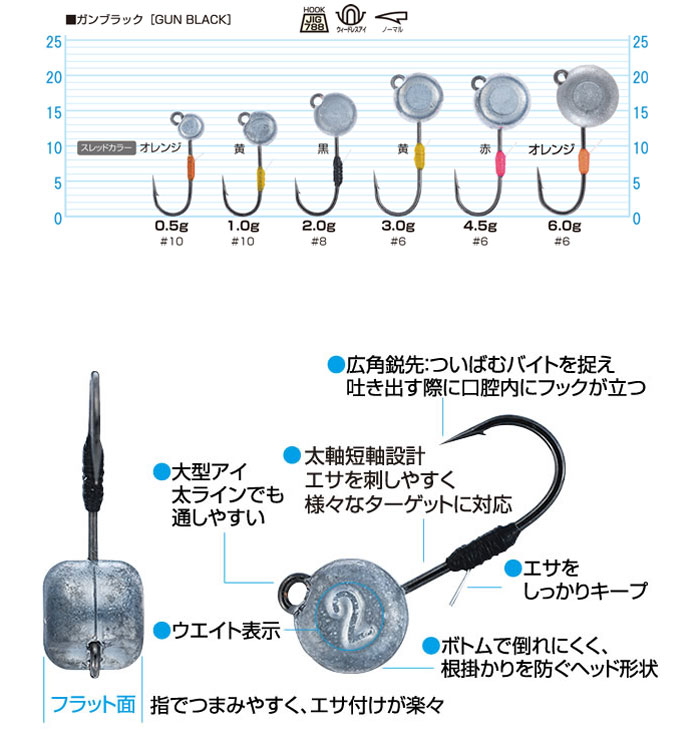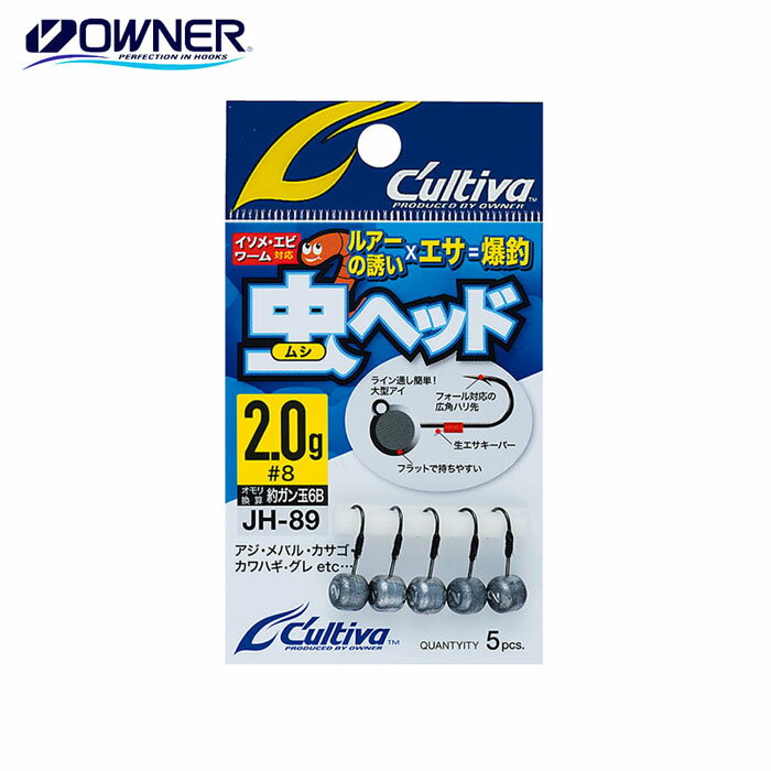 OWNER C'ultiva/オーナー カルティバJH-89 虫ヘッド ■サイズ:0.5g/1g/2g/3g/4.5gエサ釣りを手軽に楽しめるエサ専用ジグヘッド 虫ヘッドは餌釣り専用ジグヘッド。 普段使っているライトタックルに虫ヘッドを結ぶだけで、誰でも手軽にエサ釣りが楽しめます。 フック形状はもちろん、各部に専用の機能を設けています。 アプローチはリトリーブ、フォール、リフト&フォール、ボトムズル引き等。ライトゲームで培ったテクニックを存分に活かせます。 ルアーの誘いと生エサの集魚力が融合した新しい世界を、このヘッドでご体験ください。
