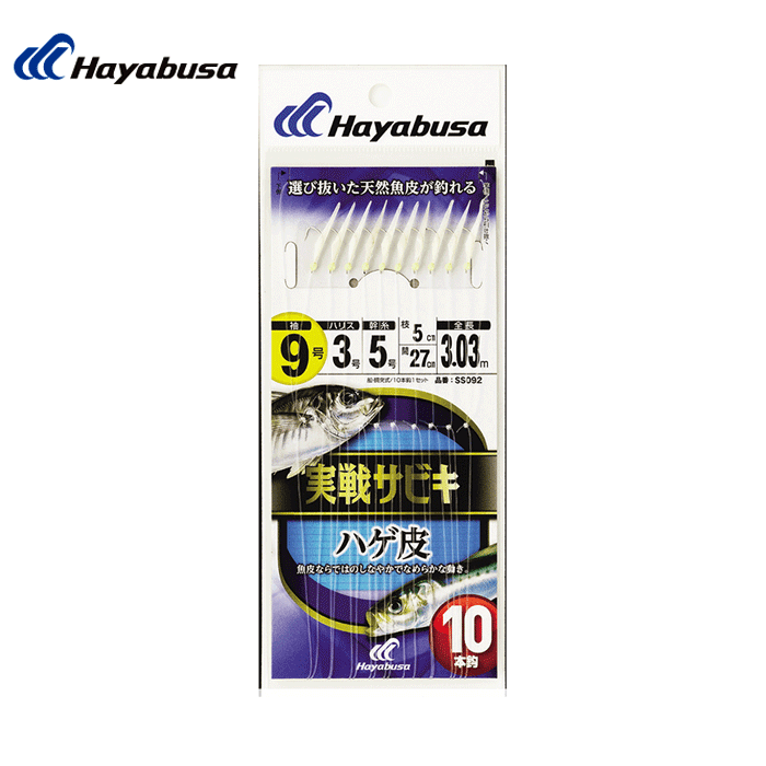 ハヤブサSS092 実戦サビキ ハゲ皮 10本鈎 ◆製品形態:船・胴突式 全長3.03m ◆入り数:10本鈎1セット ◆鈎種:袖 ◆色:白
