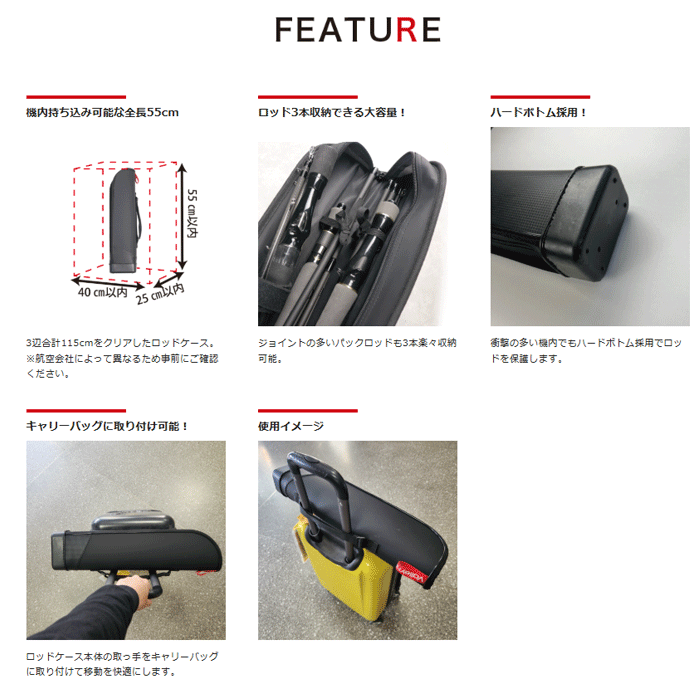 バレーヒル VHルアーロッドケース 55◆サイズ: 外寸:55x13x8.5cm ※仕舞寸52cmまで◆自重:430g★遠征時に最適!機内持ち込み可能なパックロッド用ロッドケース! 機内持ち込み可能な全長55cmのロッドケース。ジョイントの多いパックロッドも3本収納可能。ハードボトムを採用しているので衝撃の多い機内でもロッドを保護します。ロッドケース本体の取っ手をキャリーバッグに取り付けられるので移動時も快適です。