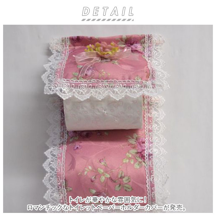 トイレ ペーパーホルダー 通販 トイレットペーパーカバー トイレットペーパーホルダーカバー ホルダー カバー 刺繍 レース トイレットペーパー 予備 簡単取付 面ファスナー チュールレース ローズ 薔薇 かわいい 上品 お