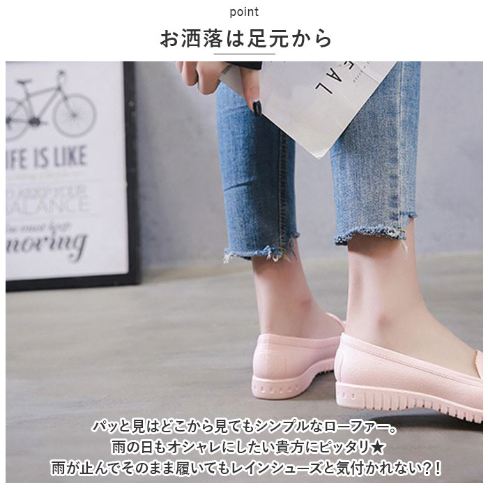 レインシューズ ローファー レディース シンプル 通販 スリッポン フラットシューズ 雨靴 カジュアルシューズ ローヒール 晴雨兼用 ぺたんこ 晴れ雨兼用 撥水 はっ水 滑り止め すべり止め カジュアル 耐摩耗性 通勤 通学 アウトドア