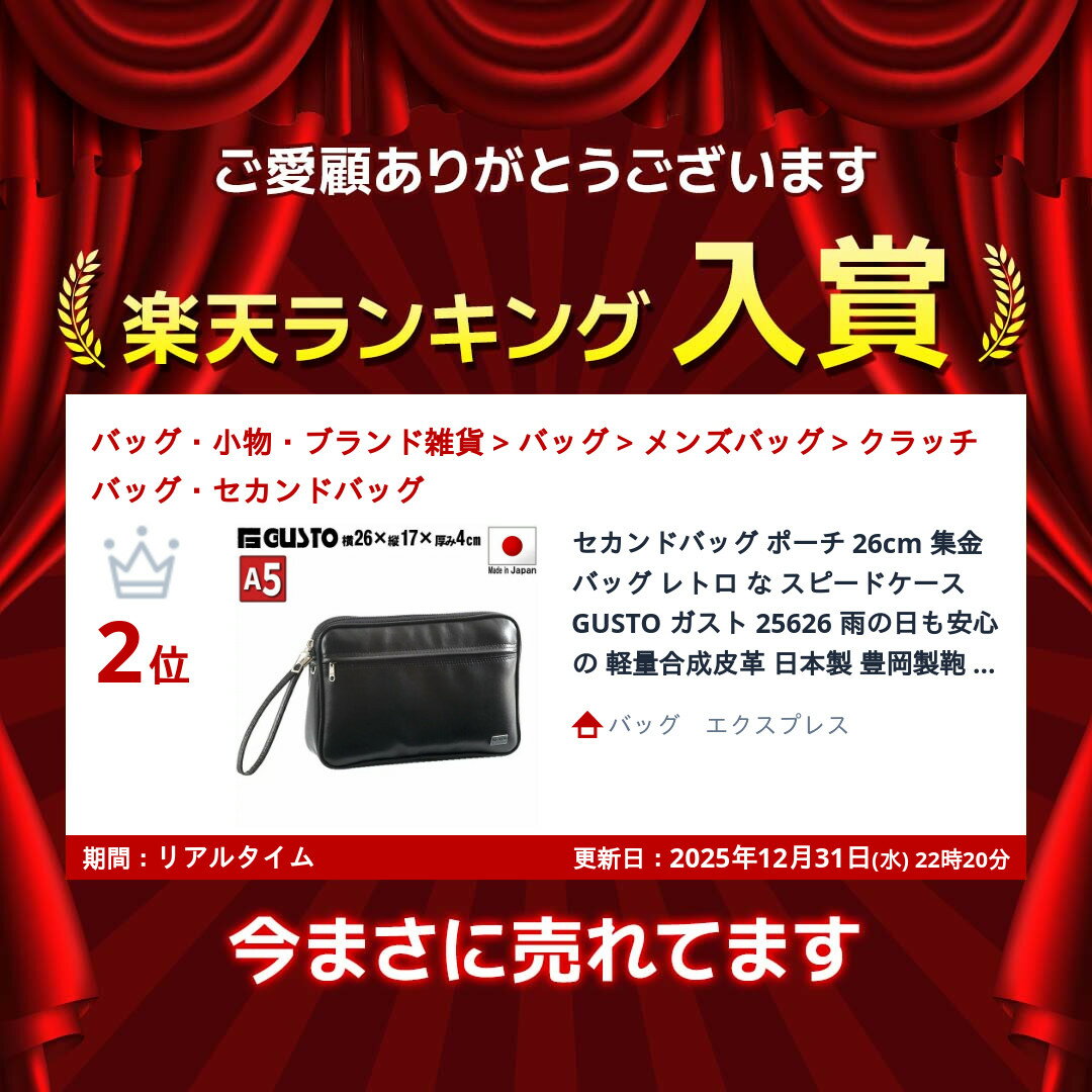 セカンドバッグ ポーチ 26cm 集金 バッグ レトロ な スピードケース GUSTO ガスト 25626 雨の日も安心の 軽量合成皮革 日本製 豊岡製鞄 小切手 現金 小銭 散歩 冠婚葬祭 結婚式 旅行 外出 通院 鞄倶楽部