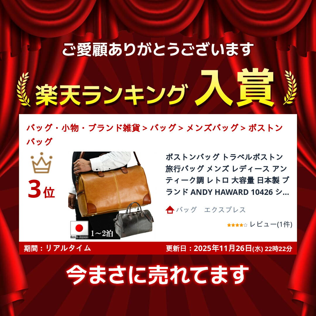 ボストンバッグ トラベルボストン 旅行バッグ メンズ レディース アンティーク調 レトロ 大容量 日本製 ブランド ANDY HAWARD 10426 ショルダーベルト 男女兼用 ゴルフ 帰省 出張 鞄倶楽部