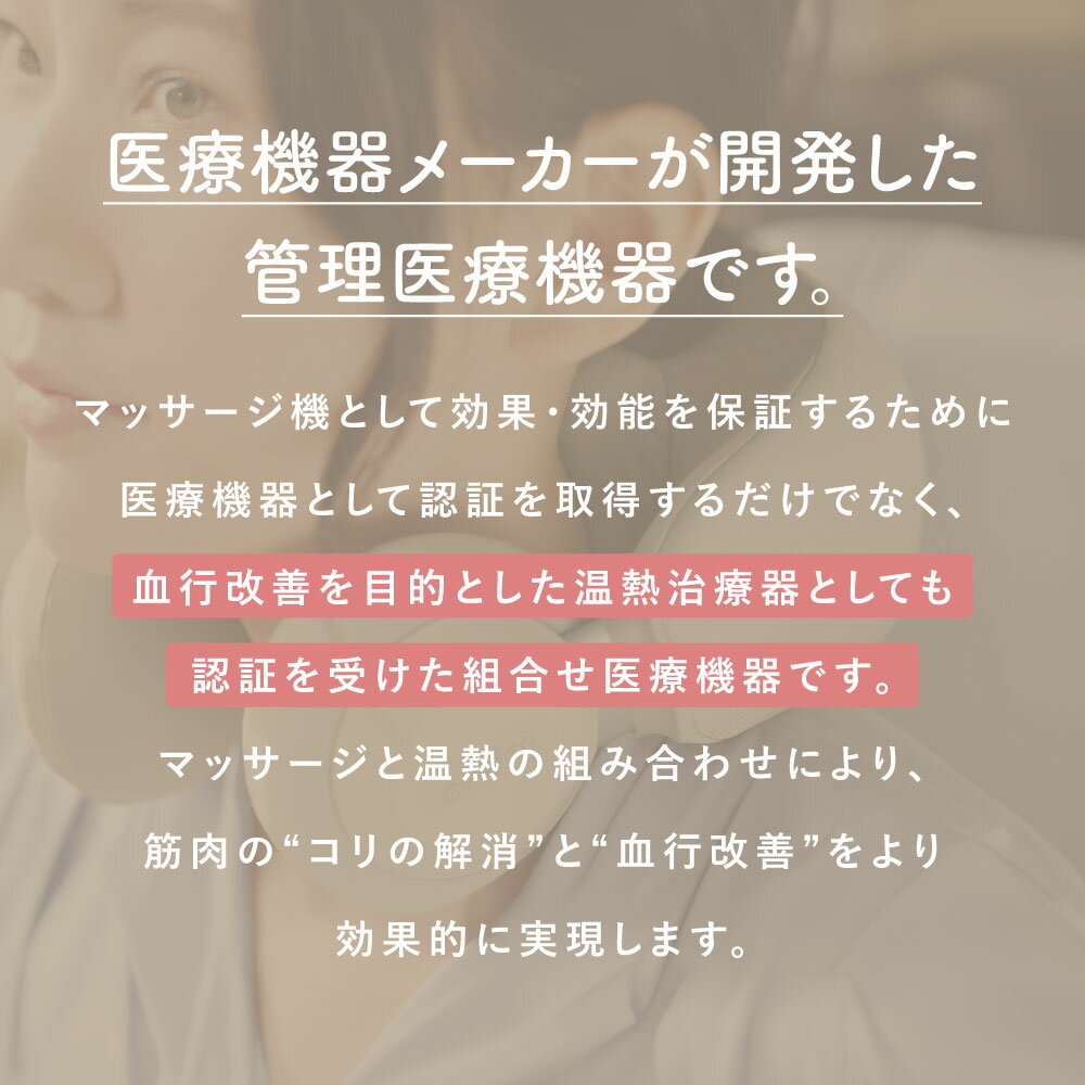 「管理医療機器」 医療機器認証番号:307AFBZX00042000 管理医療機器の温熱とマッサージの組合せ治療器。 独自設計の縦長のもみ玉と中央部に配置された大型のヒーターで、 自宅にいながらにして本格的なマッサージ・温熱治療を体験できます。 また、特殊な形状で装着時の首への負担を軽減しています。 「もみの極み」は、本格的なマッサージと温熱治療の両立をコンセプトに開発されたマッサージ器です。 首筋を包み込むようなワイドなもみ玉と、温熱治療にも使用できる大型のヒーターを搭載し、 マッサージ器として高機能を追求して開発されました。 [Keyword] 送料無料 バカ売れ研究所 バカ売れ ばか売れ ドランクドラゴン クルールラボ サポートグッズ 温める 首 あたため 温感 リラックス リフレッシュ ネック ストレッチ 肩 リラクゼーション リラクゼーション器 ネックリラクゼーション ネックリフレッシュ 小型 サポート リラックス用 リフレッシュ用 グッズ ネックリラックス ネックケア 首ストレッチ 健康 グッズ 対策 リラックスグッズ 首用ホットパック 実用 実用的 おすすめ コードレス 軽量 超軽量 コンパクト おしゃれ シンプル ミニマリスト ネックウォーマー 首ケア ヒーター テクノロジー 温活 ストレス 癒し 軽減 USB 充電 おしゃれ ギフト 贈り物 お祝い 御祝い お返し 御返し 引き出物 内祝い お礼 御礼 プチギフト お誕生日プレゼント 御誕生日プレゼント お誕生日祝い 御誕生日祝い お誕生日ギフト 御誕生日ギフト 誕生祝い バースデーギフト 結婚内祝い ご結婚祝い 御結婚祝い 結婚記念日 1周年 10周年 40周年 ご出産祝い 御出産祝い 出産内祝い ご入園祝い 御入園祝い ご入学祝い 御入学祝い 新築祝い お引越し祝い お引っ越し祝い ご卒業祝い 御卒業祝い ご就職祝い 御就職祝い 転職祝い 昇格祝い 七五三祝い 手土産 母の日 父の日 敬老の日 卒業式 成人式 金婚式 銀婚式 卒業記念 新年会 忘年会 歓迎会 送迎会 歓送迎会 退職祝い お年賀 御年賀 二次会 景品 お祭り 行事 寸志 女性 男性 家族 夫婦 友人 同僚 上司 部下 イベント クリスマスプレゼント クリスマスギフト Xmas プレゼント交換 バレンタインプレゼント バレンタインギフト ホワイトデープレゼント ホワイトデーギフト お中元 御中元 お歳暮 御歳暮 お正月 御正月 ひな祭り ひなまつり こどもの日 子供の日 子どもの日 お花見 御花見 GW ゴールデンウィーク 帰省 お盆 ハロウィン
