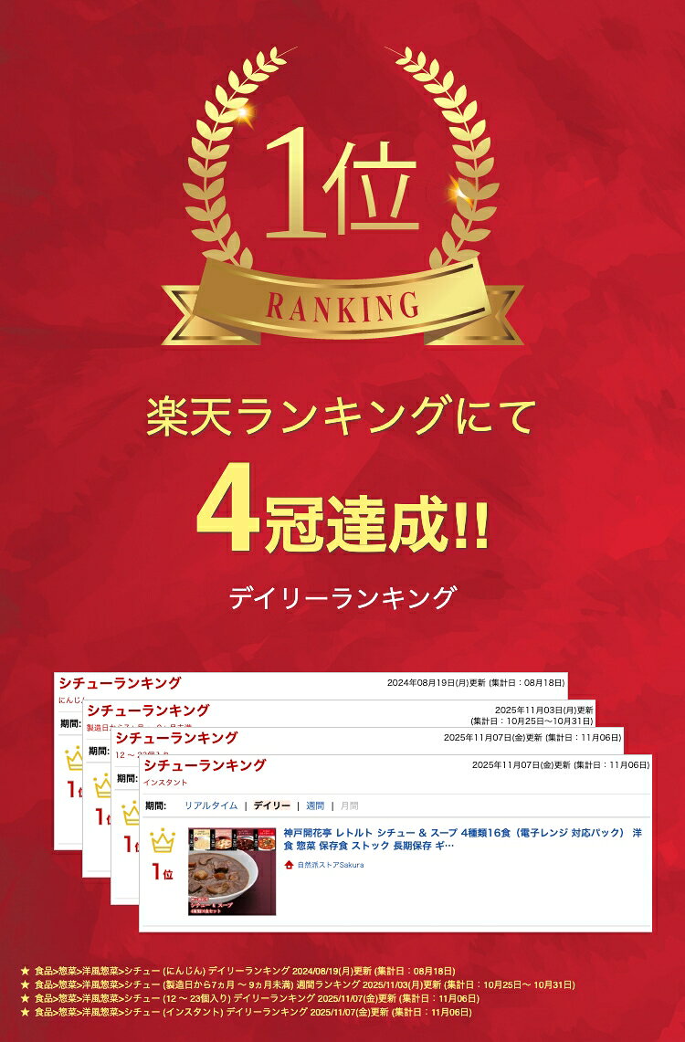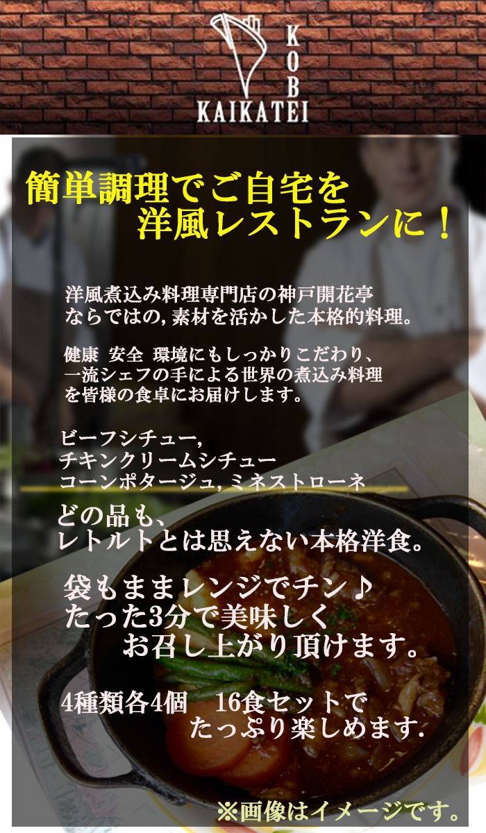 神戸開花亭 レトルト シチュー & スープ 4種類16食(電子レンジ 対応パック) 洋食 惣菜 保存食 ストック 長期保存 ギフト 御中元 御歳暮 母の日 父の日 敬老の日 インスタント